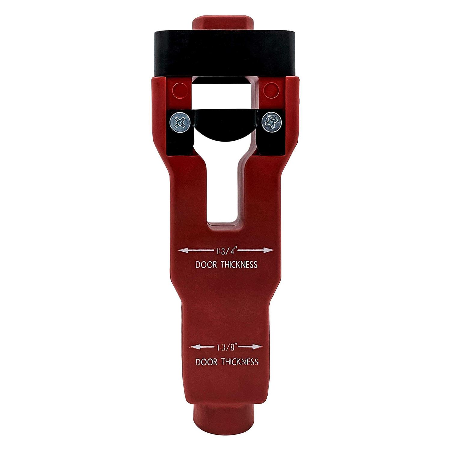 Eliminate guesswork with this door latch mortise tool. Use in tandem with your corner chisel or similar tool to remove material evenly and protect those delicate door edges. It has a handy guide printed on the tool itself to help with the most common thicknesses of doors: 1-3/8″ and 1-3/4″.