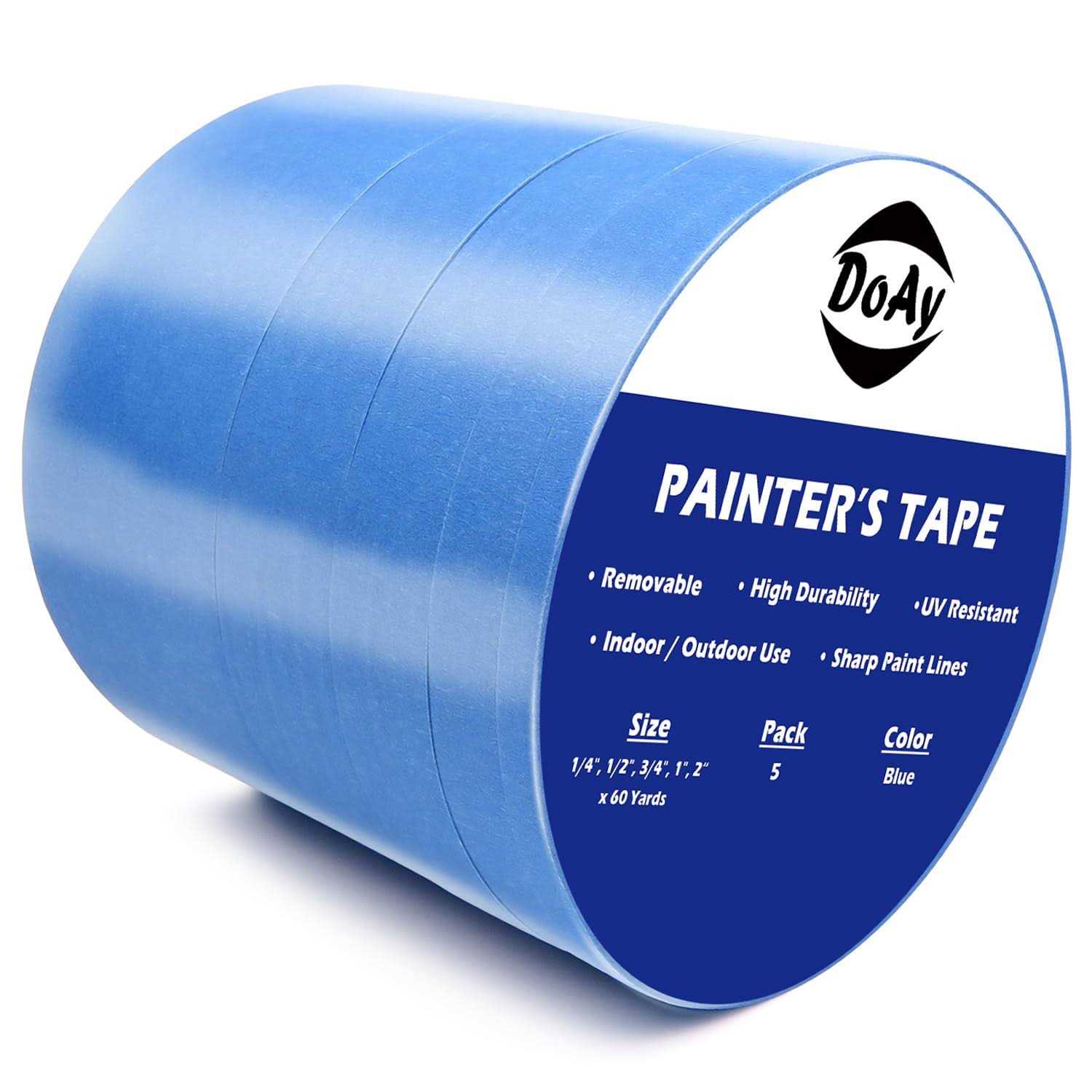 DOAY Blue Painters Tape 1/4″ 1/2″ 3/4″ 1″ 2″ x 60 Yard – Multi Size Pack – Multi Surface Use – 5 Rolls