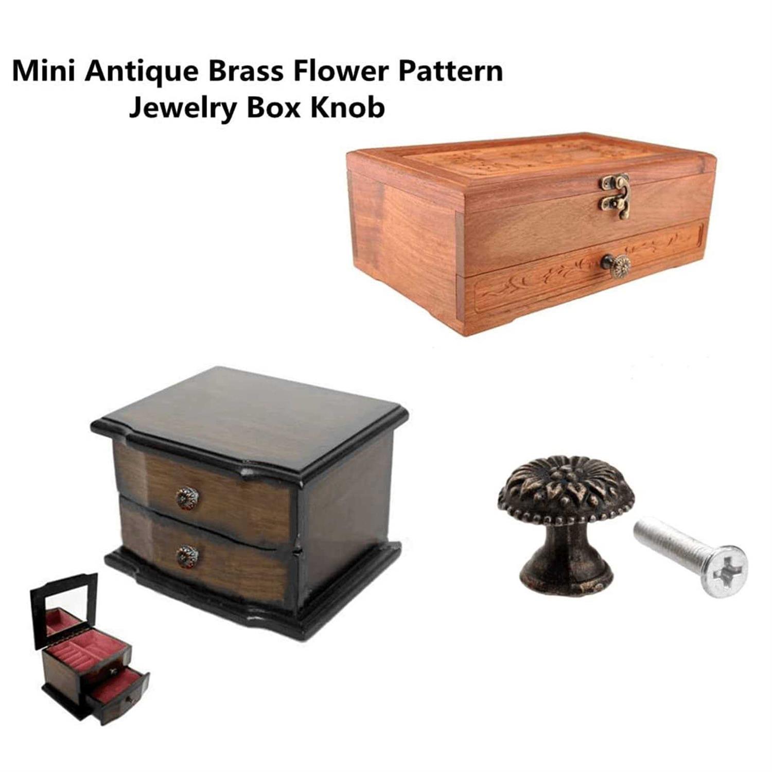 dophee 5pcs 0.67x 0.59 Antique brass Round Jewelry Box Pull Handle Drawer Cupboard Wardrobe Cabinet Flower Pattern Knob