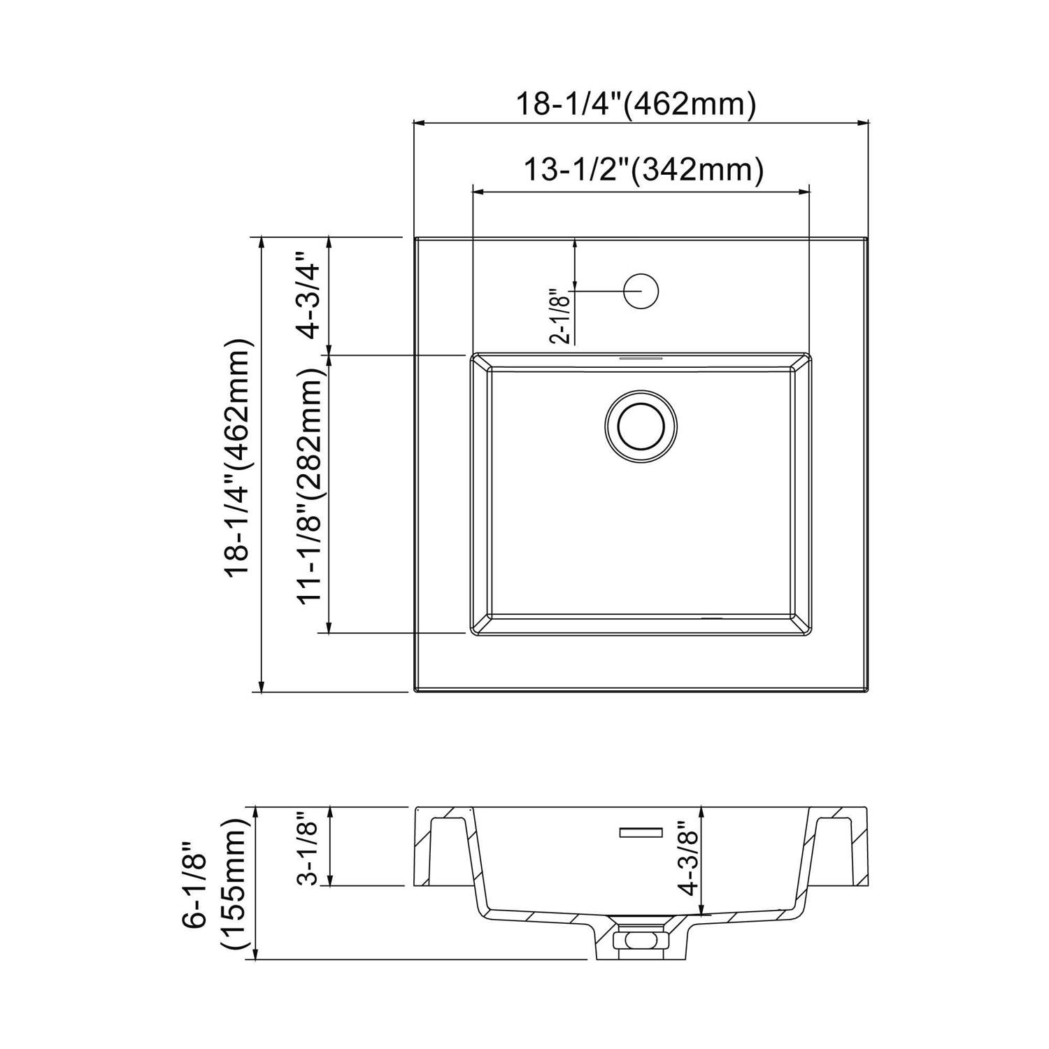 This vanity top comes at and is super easy to maintain and clean, with high-quality solid surface resin material and modern style, 18″ front-to-back depth fits on top of a vanity cabinet of the appropriate size.