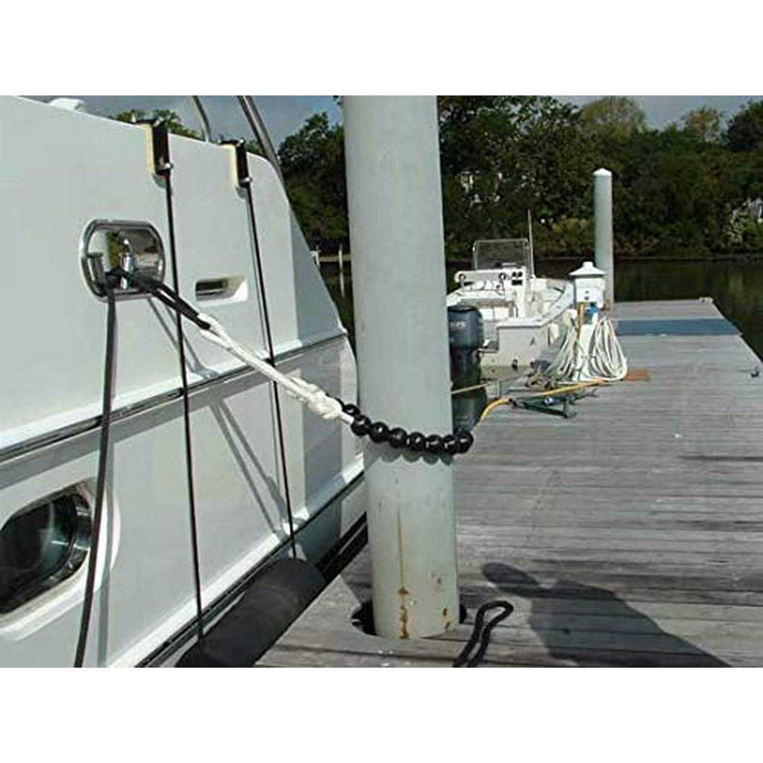 The Tideminders system for controlling dock/mooring lines in tidal waters is simply amazing. This inexpensive string of black pearls protects lines against fouling and chafing-and your lines will roll up and down any size piling with the tide eliminating the need to constantly adjust lines during storms and tidal changes. As the balls move up and down they offer constant tension with built in shock absorption.