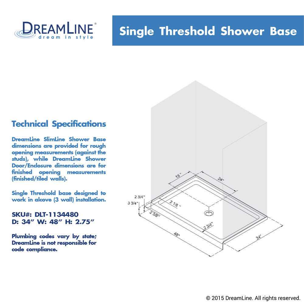 DreamLine SlimLine 48 34 Single Threshold Shower Base DLT-1134480