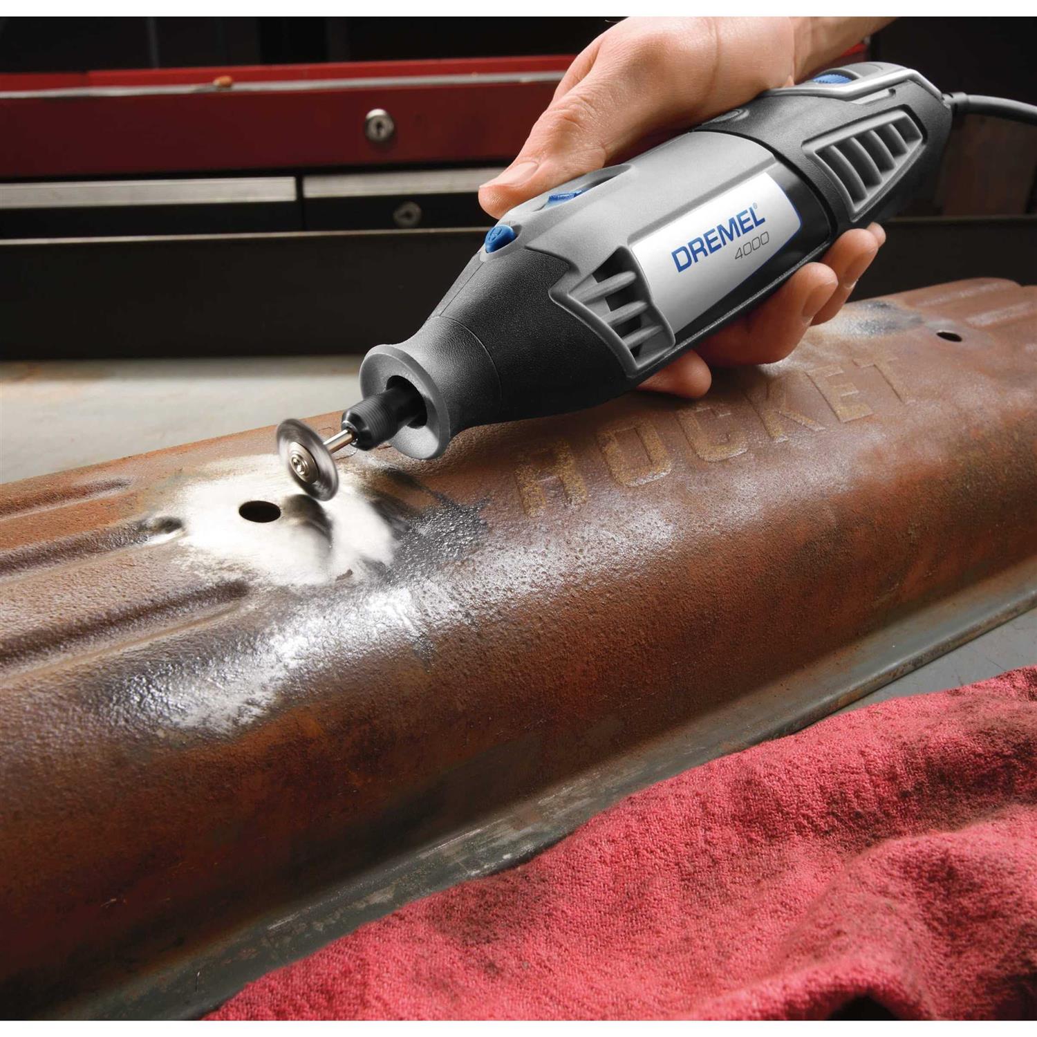 The Dremel 4000 variable speed rotary tool offers the highest performance and most versatility of all Dremel rotary tools. The increased strength of its motor plus electronic feedback circuitry enables consistent performance at all speed levels. Dremel 4000 can use all existing Dremel rotary tool accessories and attachments plus high-performance attachments to complete the widest range of projects. A slim, ergonomic body provides a 360-degree grip zone for comfort and control in any grip position.