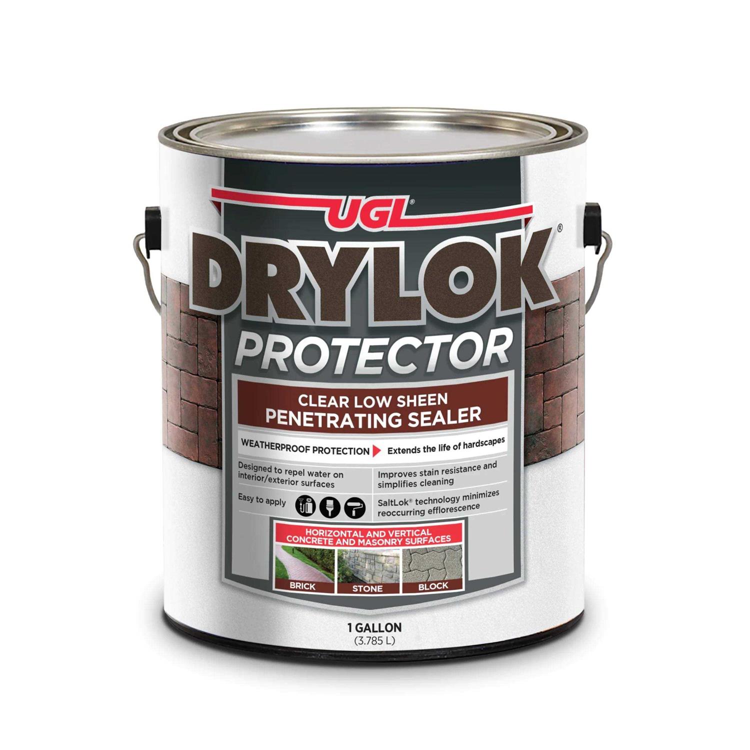 DRYLOK Latex Base Concrete Protector with SALTLOK Gallon This product provides clear weatherproof protection against deterioration caused by de-icing salt, gasoline, oil, weathering and efflorescence (white, powdery, salt-like deposits visible on masonry). DRYLOK ‘s unique SaltLok Technology penetrates into the surface providing superior resistance to unsightly efflorescence staining often visible on brick, block and poured concrete surfaces. DRYLOK Concrete Protector seals bare masonry surfaces against dusting staining, surface cracking and pock marking. Soap and water clean-up. Ideal primer prior to applying latex masonry coatings. <100 g/L VOC content. 6 hour dry time. Gallon can. Sold 2 cans per case.