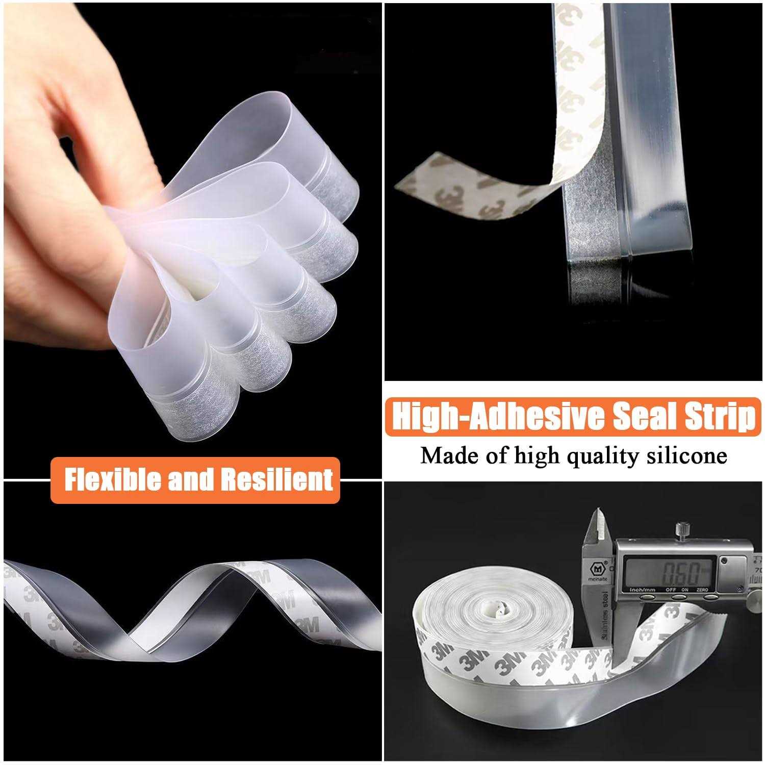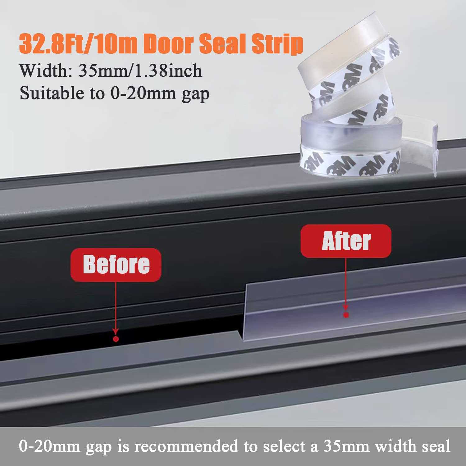 Dstorelhp 32.8ft Silicone Weather Stripping Tape for Doors, Windows, Shower – Self Adhesive Door Draft Stopper and Seal Strip (Transparent, 35mm)
