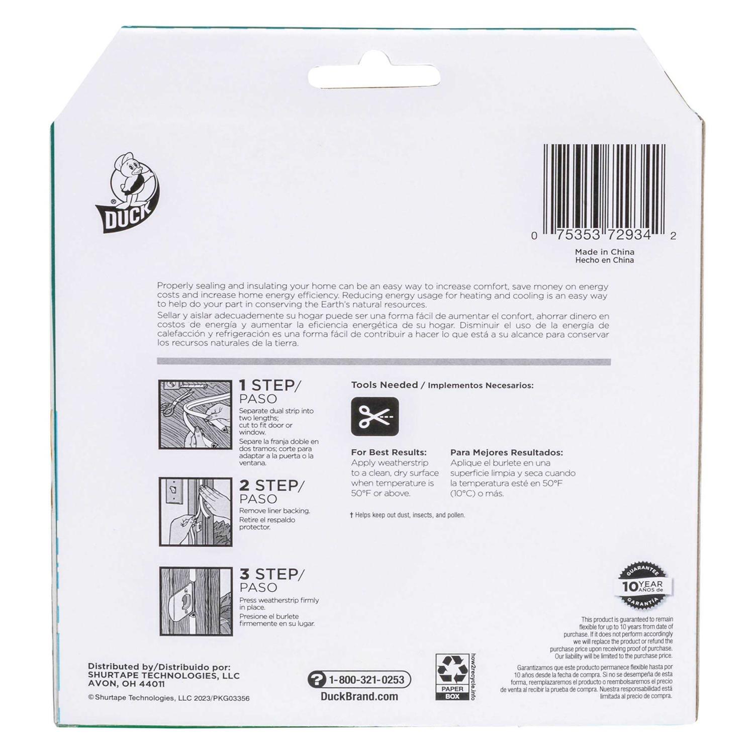 Cracks and gaps around windows and doors can cause drafts to come into your home, leading to high heating and cooling costs. Self-adhesive Duck Brand Heavy-Duty Weatherstrip Seals are made with durable and flexible material, allowing them to stand up against extreme temperatures that cause other seals to freeze or crack. They are a great solution for replacing old or worn door and window seals, forming a barrier against the outdoor air, as well as dust, pollen and insects during the warmer months. Use together with other Duck Brand weatherization products to make your home more comfortable and energy efficient all year long.