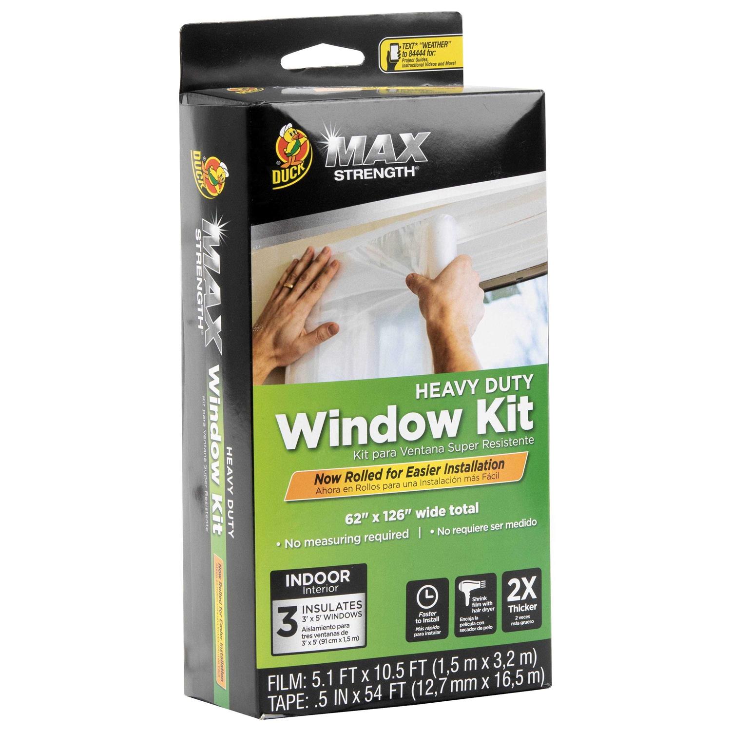 During the cold weather months, windows be a prime spot for energy loss. Duck Brand Max Strength Window Kits create an added barrier between the outdoor air and your home’s inside, helping block drafts and air leaks that lead to high heating costs. Made with puncture-resistant film that is stronger than standard window kits, these kits are great for high-traffic or pet-friendly households. Plus, it’s made with clear shrink film for good visibility and it’s easy-to install and remove once the warmer weather arrives. Use together with other Duck Brand weatherization products to make your home more comfortable and energy efficient all year long.
