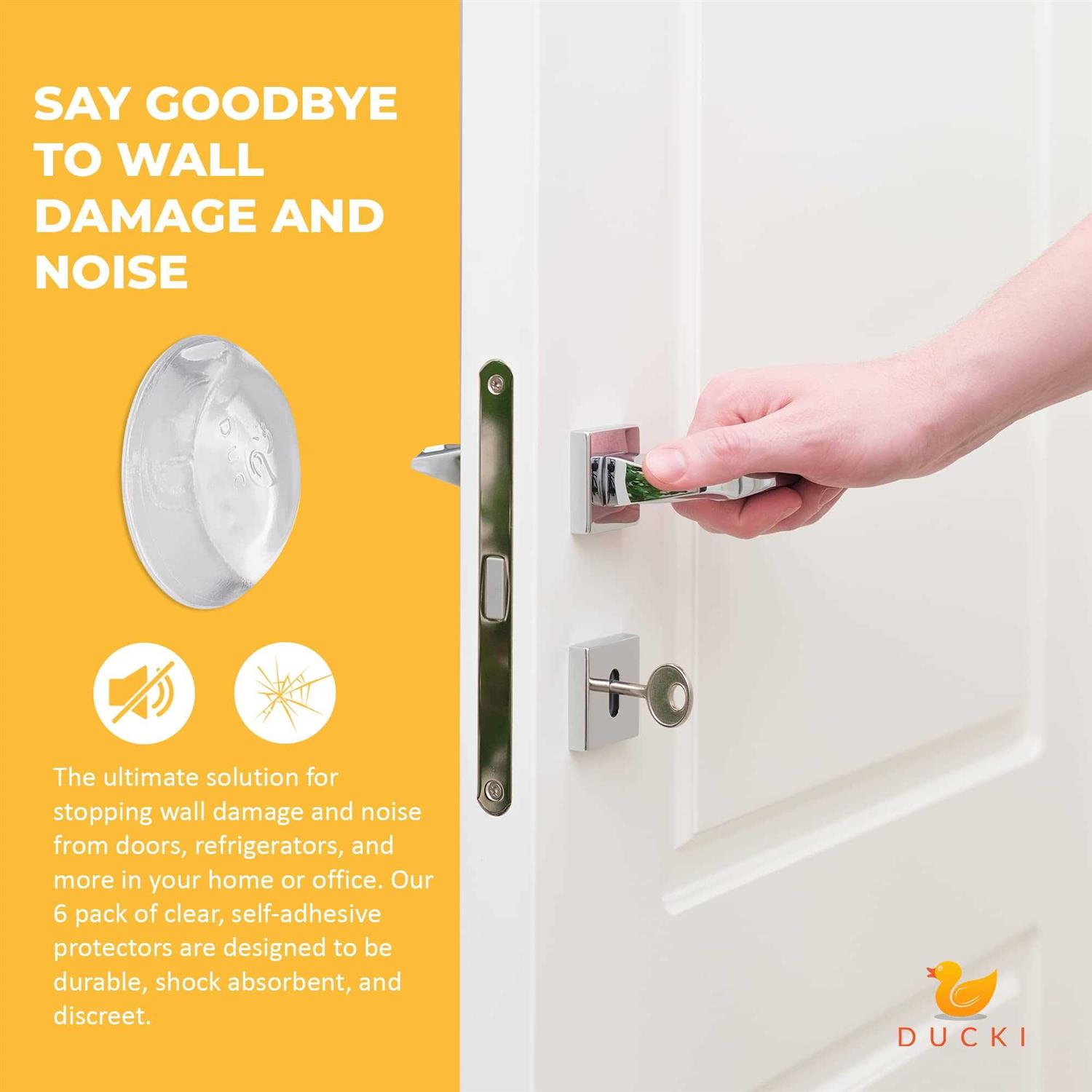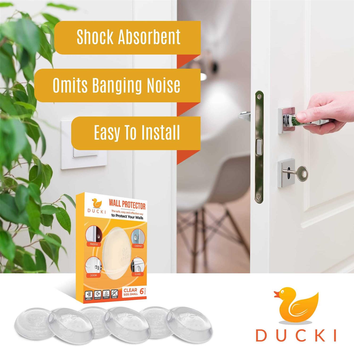 Ducki Wall Protectors – 6 Pack Clear – Self Adhesive, Reusable Solution for Stopping Wall Damage & Noise from Doors, Refrigerators & More in Your