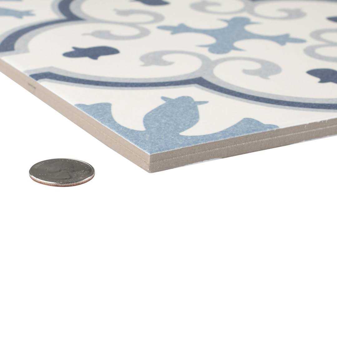 Capturing the beauty of artisanal cement tile, our floor, and wall tile is a gorgeous tribute to encaustic design. This tile features floral old-world patterns that frame dueling arcs at the center in varying shades, offering contrast and dimension to the decoration. The smooth, satin surface features a weathered, speckled look, replicating the beauty of the aged tile. The floral, geometric pattern blends into virtually any design theme, making this an exceptional product for modern installations and historic renovations. Its impervious and frost resistant features make this tile and the ideal choice for both indoor and outdoor commercial and residential installations, including kitchens, bathrooms, backsplashes, and patios. Tile is the better choice for your space. This tile is made from natural ingredients, making it a healthy choice as it is free from allergens, VOCs, formaldehyde, and PVC.