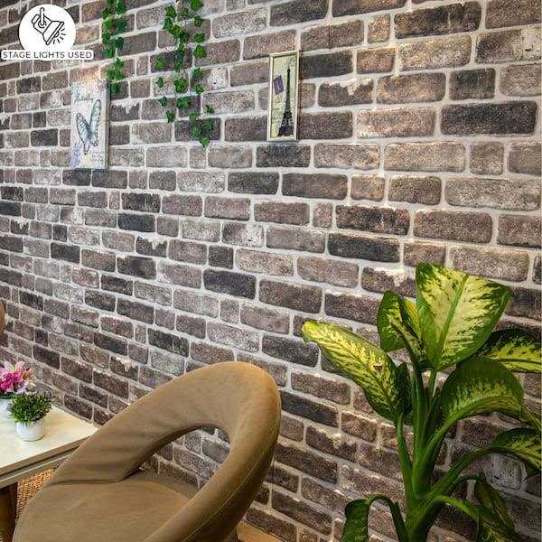 Dundee Deco Falkirk Uffcott 4/5 in. x 3-1/4 ft. x 1-3/5 ft. Grey Black Faux Brick Styrofoam 3D Decorative Wall Panel (5-Pack)