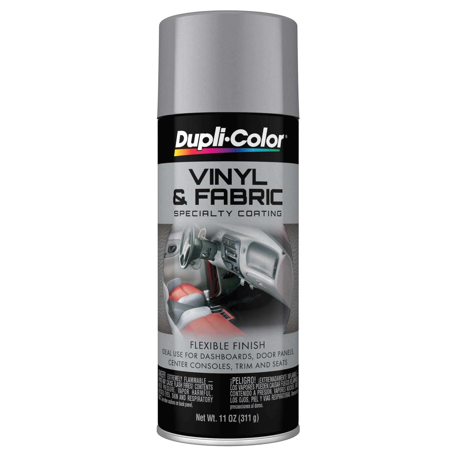 Features EZ Touch Conical Nozzle Flexible self-priming formula Resists cracking, flaking, and peeling Dry to touch in 30 Minutes / Handle in 1 Hour Dupli-Color Vinyl & Fabric Coating is perfect for restoring or customizing your interior vinyl seats, dash boards, door panels, shifter boots and consoles. Formulated with a maximum adhesion promoter so there’s no need for primer. Dupli-Color Vinyl & Fabric Coating won’t crack, peel or chip.