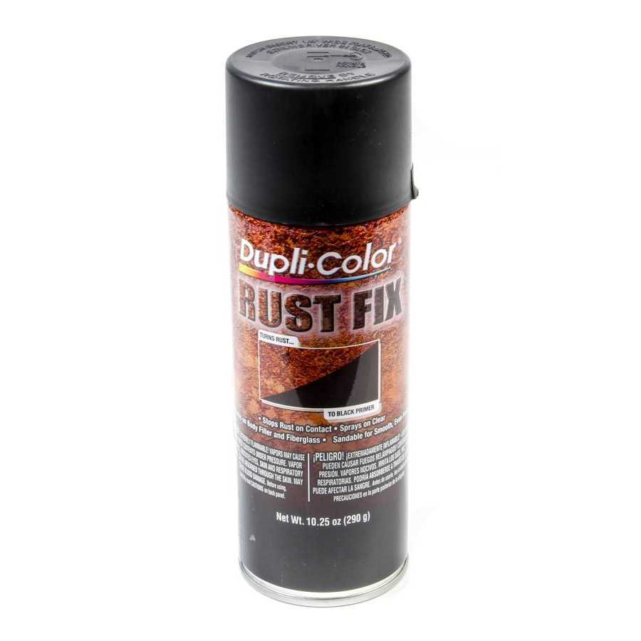 Features and Benefits: Destroys rust on contact Prevents future rust from forming Sands to smooth finish for top coating Dry to touch in 30 minutes / Handle in 1 hour Dupli-Color Rust Fix Coating destroys rust on contact by bonding and transforming it into sandable and paintable surface. Sprays on clear and transforms into a black, metal protecting coating that prevents future rust from forming. Rust Fix saves you the time of sanding all the way down to bare metal and can be used with body filler and fiberglass.Warranty: No warranty