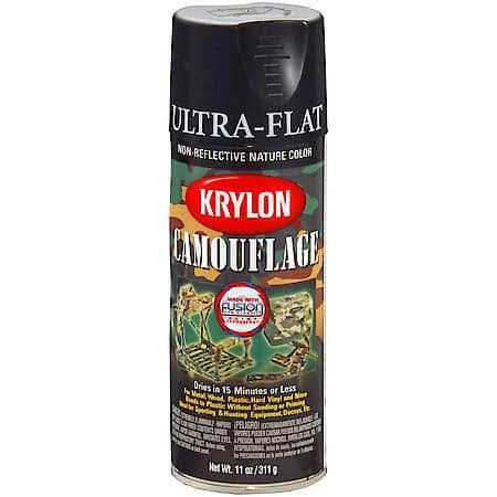 Ultra-flat paint is non-reflective to provide the ultimate camouflage. Bonds to most plastics. No sanding, no priming. Ideal for sporting and hunting equipment, decoys and more. Fast dry; fully chip-resistant after 7 days. For use with wood, metal, wicker, wrought iron, plastic, hard vinyl, glass, plaster, ceramic, paper, paper mache. Dries to touch 15 minutes or less. Bonds to most plastics and also for metal, wood, hard vinyl and more. No sanding or priming. Dries in 15 minutes or less; fully chip-resistant after 7 days.This product’s UPC is 10724504042904, and is made by Krylon