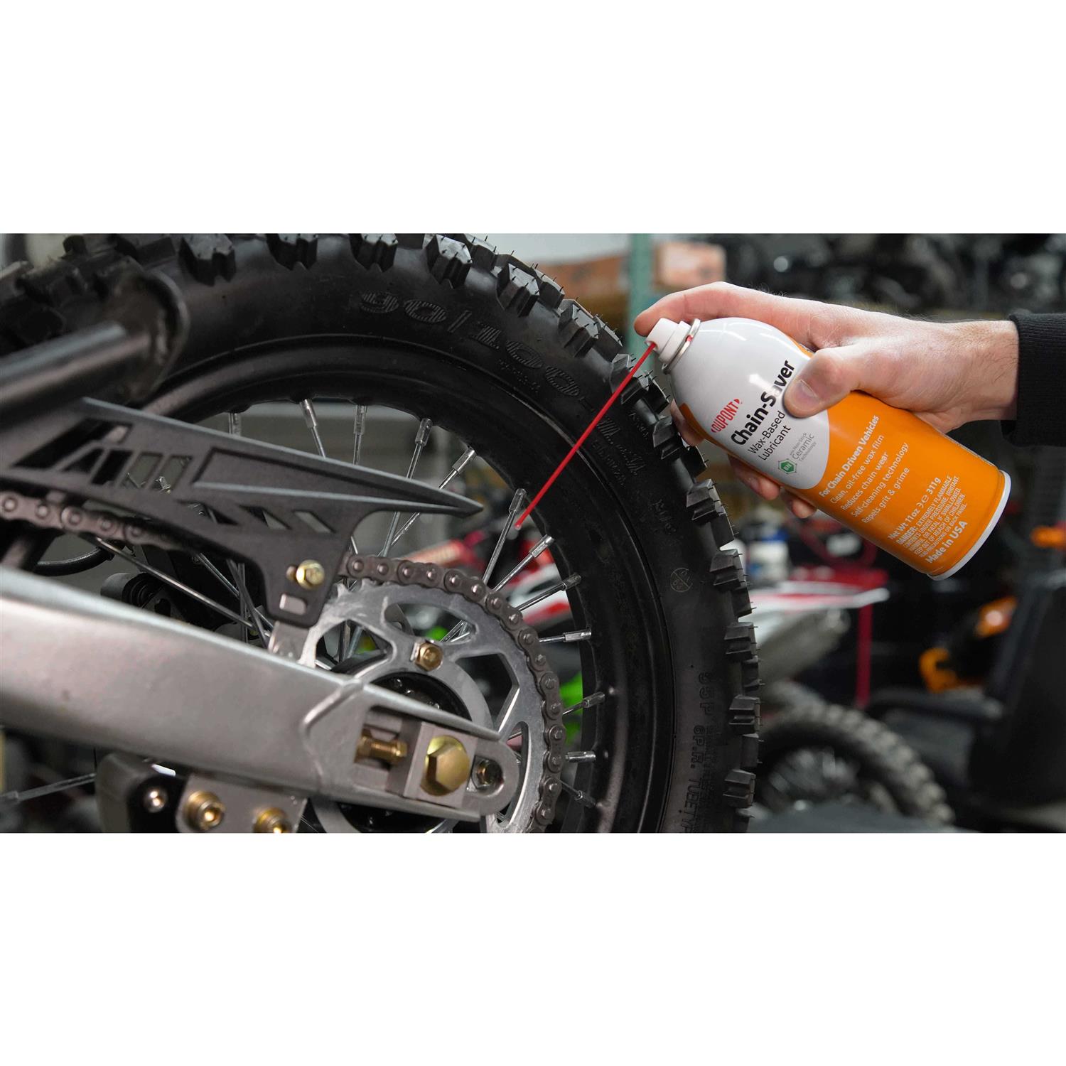 Maintain your all-terrain vehicle (ATV), bicycle chain or motorcycle with DuPont Teflon Chain Saver. Once applied, this product will resist dirt and provide the surface condition necessary to promote a longer life. It will also ensure proper operation of your motorized or man-powered mode of transportation. This high performance bicycle chain lubricant is formulated with a dry-wax that resists dirt build-up and does not flake off. With regular use, it can also help sprockets last up to five times longer. DuPont Teflon lubricant 11 oz has been tested and used extensively in the motorcycle industry for over a decade. Anti-corrosive properties along with enhanced wear protection have earned it high acclaim from Motorcycle Consumer News, WebBikeWorld and numerous other publications.