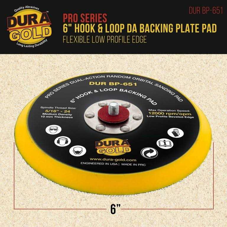 Dura-Gold Pro Series 6″ Hook & Loop Da Backing Plate Pad – Low Profile Edge, Medium Density, Dual-Action Random Orbital Sanding Pad, 5/16″ – 24