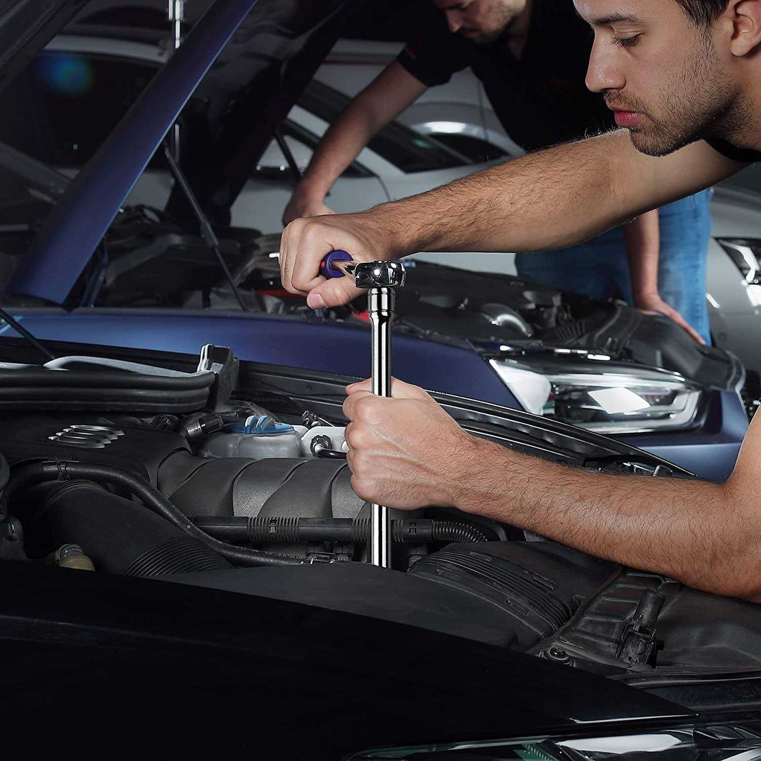 - 【SPECIFICATIONS】360 degree swivel 5/8″ socket with 6-Point, Cr-V steel, magnetic core. Total Length: 11 inch, Drive Tang: 3/8 inch.