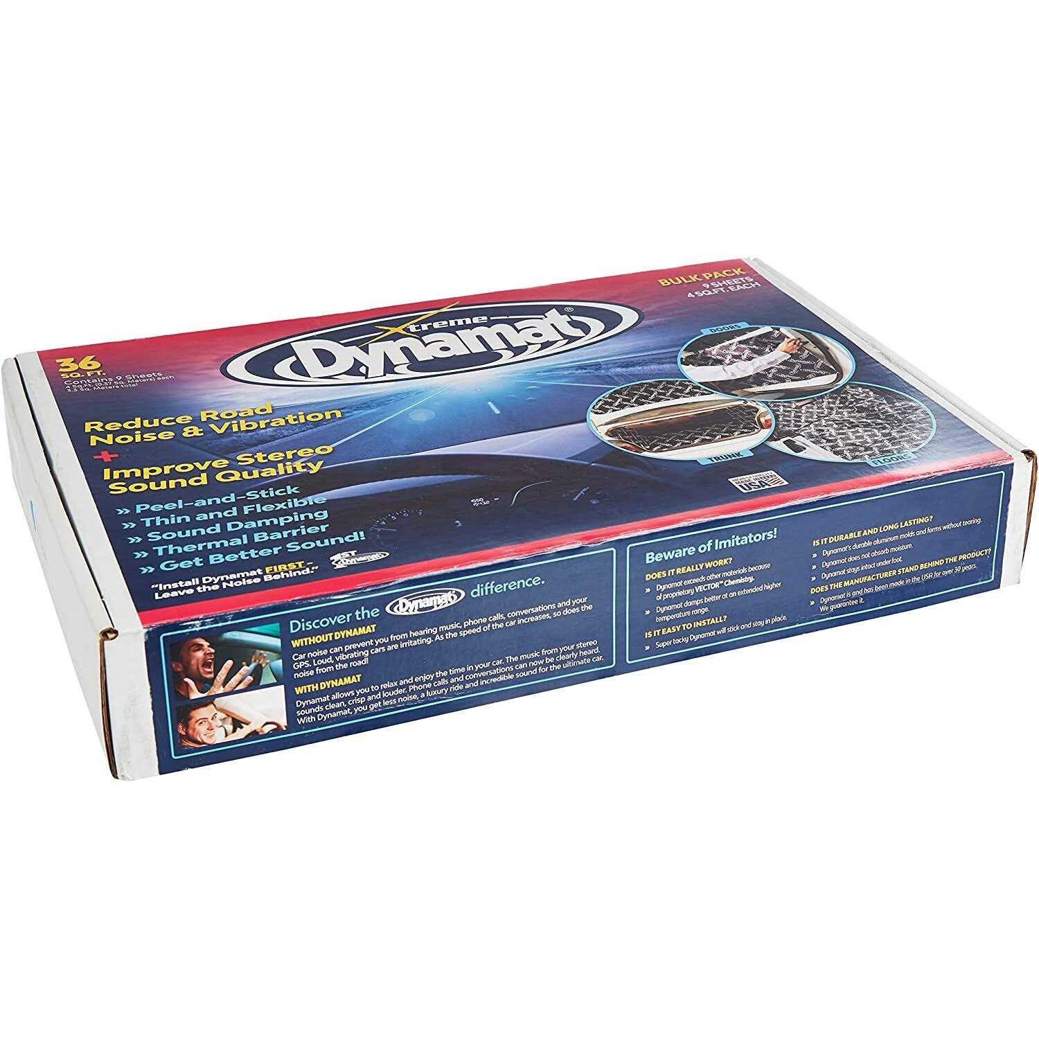 Dynamat Xtreme Bulk Pack Nine 18″ x 32″ pieces of Dynamat Xtreme For use on rear decks, doors, floors and the boot Stop vibration and reduces road noise Great for boosting your in car sound system