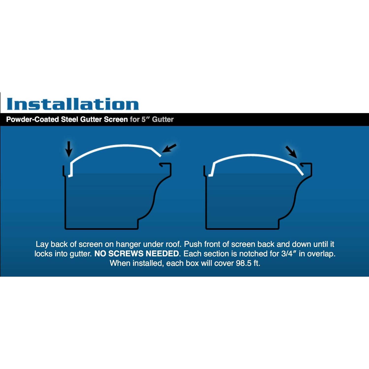EZ Shield 10 is made for 5 in. K-style gutters, each section is notched for 3/4 in. overlap. Easy to install Reverse louvers allow water in but keep debris out. Heavy-duty painted aluminum won’t rust or rot. Designed to stay in place during rough weather; snaps out for maintenance. Black color heats quickly to help melt ice and snow on gutter guard.