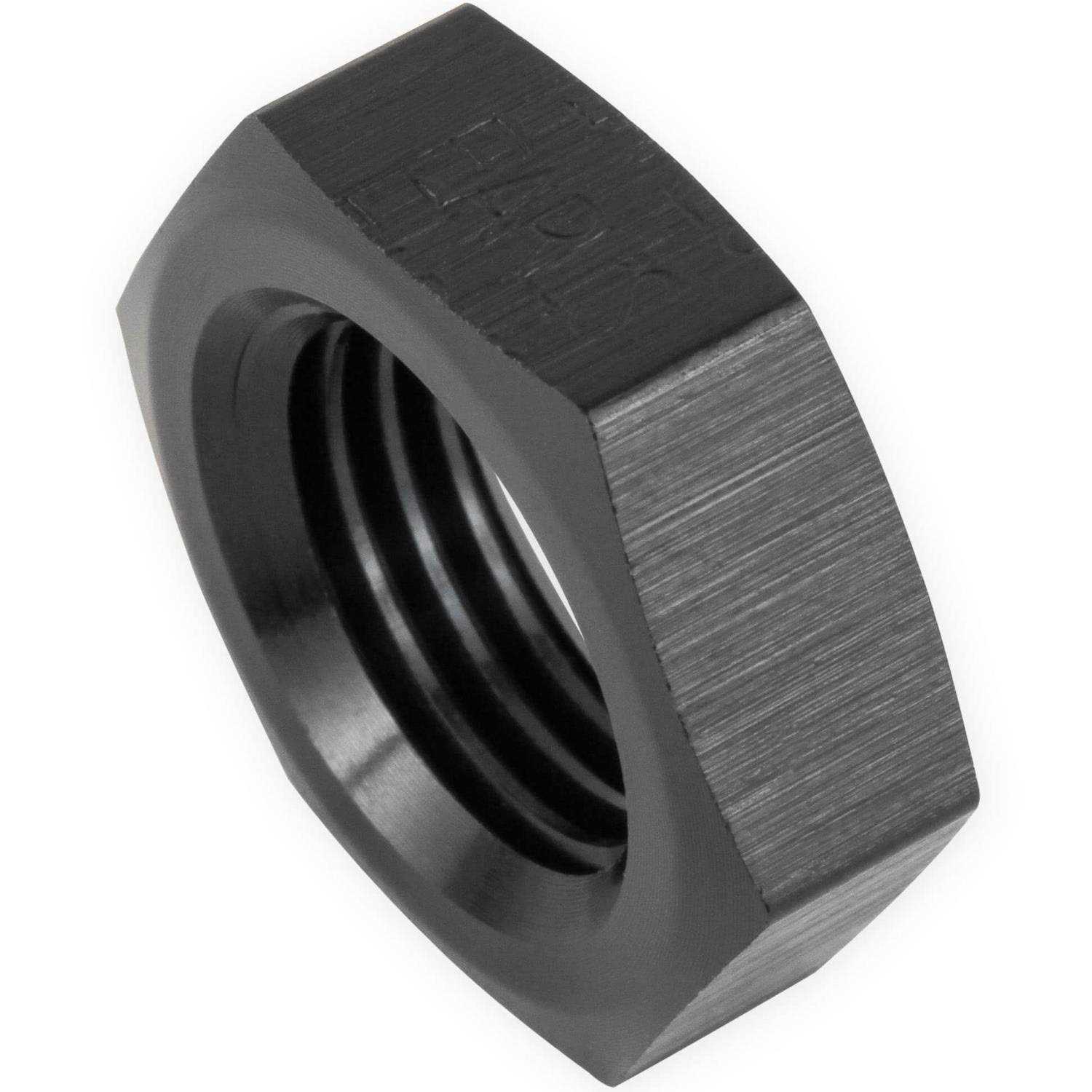 Fuel Cell Bulkhead Fitting -6 AN with PTFE Washers & Bulkhead Nut; These special high flow bulkhead fittings are designed for use in fuel cells, and have a tapered inlet to improve flow. Aluminum construction with black anodized finish. Each bulkhead fitting includes (2) PTFE washers and bulkhead nut. These fittings can also be used for adding a breather to a valve cover, or a drain on a fabricated tank.