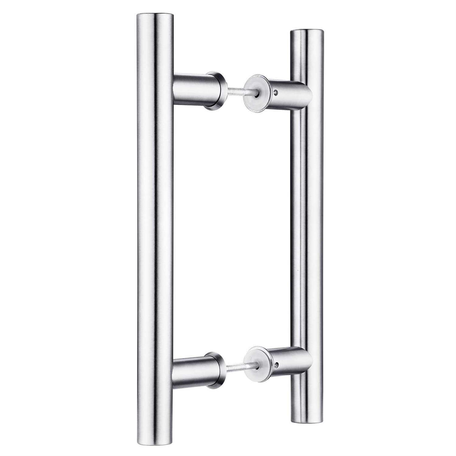 EaseLife 12 Stainless Steel Double Sided Push Pull Door Handle,H Shape Sliding Door Handle,Brushed,Fit for Glass Door Wooden Door