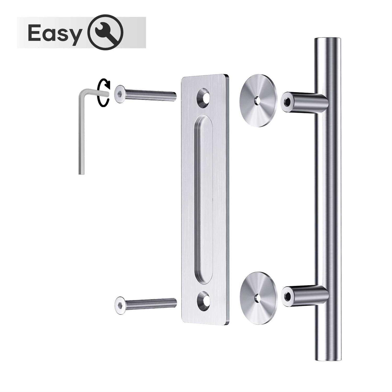 EaseLife 12 Stainless Steel Sliding Barn Door Handles and Pulls Flush Hardware Set,Double Sided,Brushed Finish,Anti-Rust Anti-Co