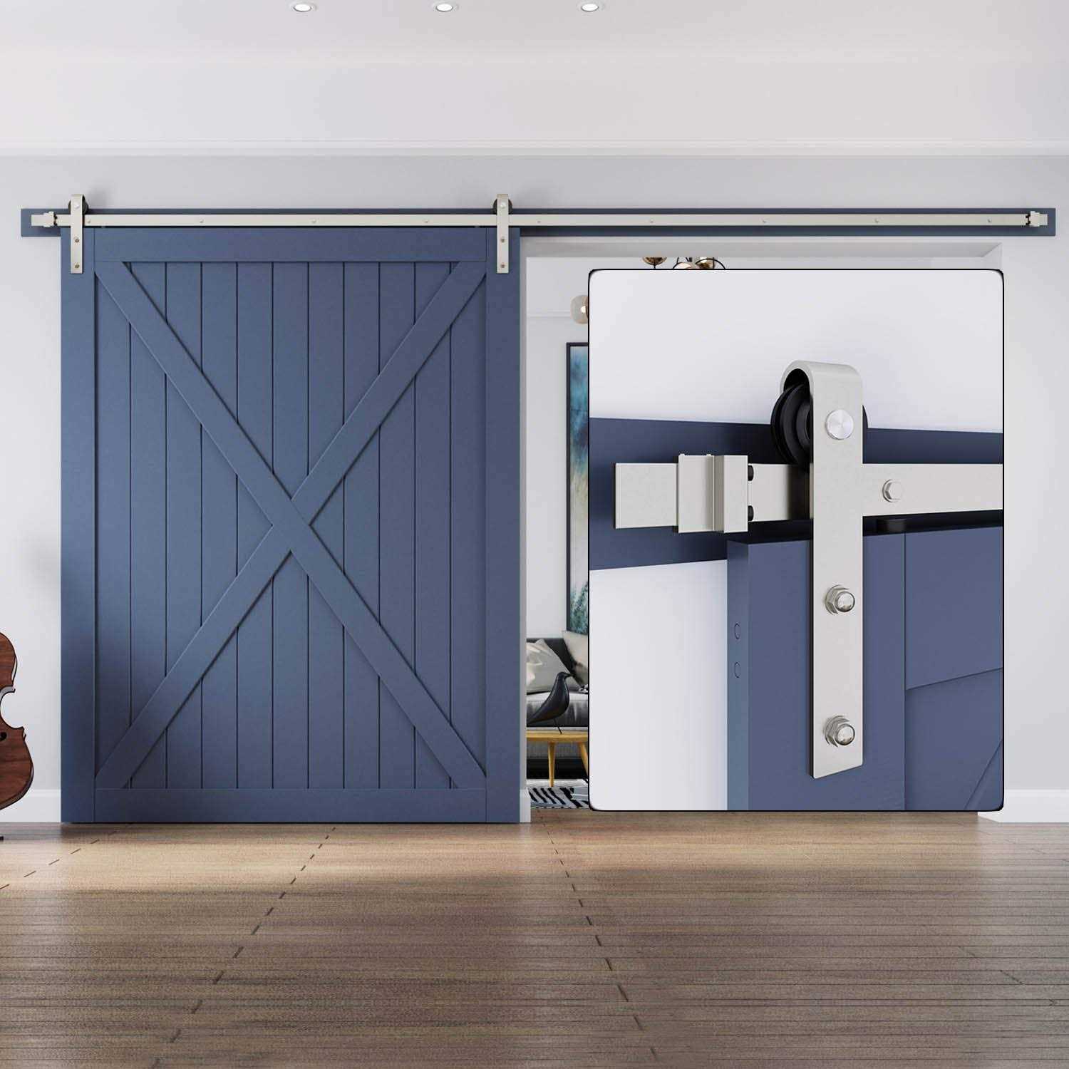 Easelife Brushed Nickel Sliding Barn Door Hardware Track Kit,Basic J Pulley,Heavy Duty,Slide Smoothly Quietly,Easy Install