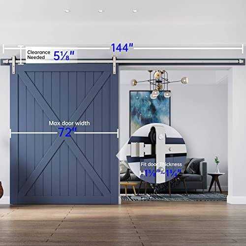 Sliding Door Hardware by EaseLife. Details:Feature Tips 1: Pre-drilled 16″ apart hole on the track to meet drywall studs 2: Different Wall Avaiable:Solid wall and soft wall 3: Large range thickness door panel avaiable, two spec roller bolts to suit for 1.375″ – 1.75″ (35mm-45mm) thickness door panel 4: All necessary hardware is included as you see in the pictures,only not include door. FAQ Q: How long track do I need A: the track length need at least twice of the door panel width , a bit longer would be better Q: Can I cut the track myself A: yes, you can cut the track yourself to meet your need . Q: How to clearance the door frame A: Attach a wooden board with the same thickness as your frame into your studs first, and then mount the track onto the wooden board.