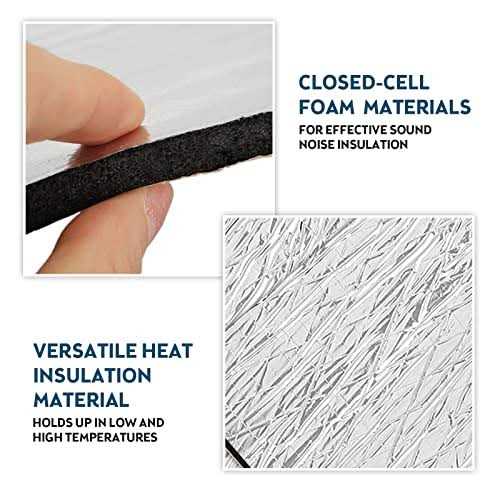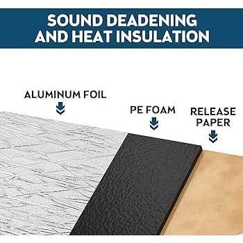 【Outstanding insulation】This car heat shield mat has an adhesive layer and is a versatile heat insulation material with excellent heat insulation performance. It can keep the car warm in winter and cool in summer and keep the car at a comfortable temperature. 【Noise reduction】 Car sound insulation mat are made of closed-cell foam sound insulation materials, which can effectively eliminate and block engine noise, vibration and friction noise during driving, giving you a quiet driving space and greatly improving driving comfort. 【Advantages】 The sound deadener damping mat is light in weight, does not absorb water, is resistant to oil and high temperature, and is also fire-resistant and flame-retardant. 【Widely used】Widely used in car roofs, hoods, firewalls, chassis, interior and exterior partitions, trunks, wheel arches, body panels, under seats, trunk covers, etc. 【Specifications】 Quantity: 10 pieces, Size: 15.7″ x 9.8″, Thickness: 276mil, Total Coverage area: 10.76 sqft , Easy to cut and install to meet your needs. 0