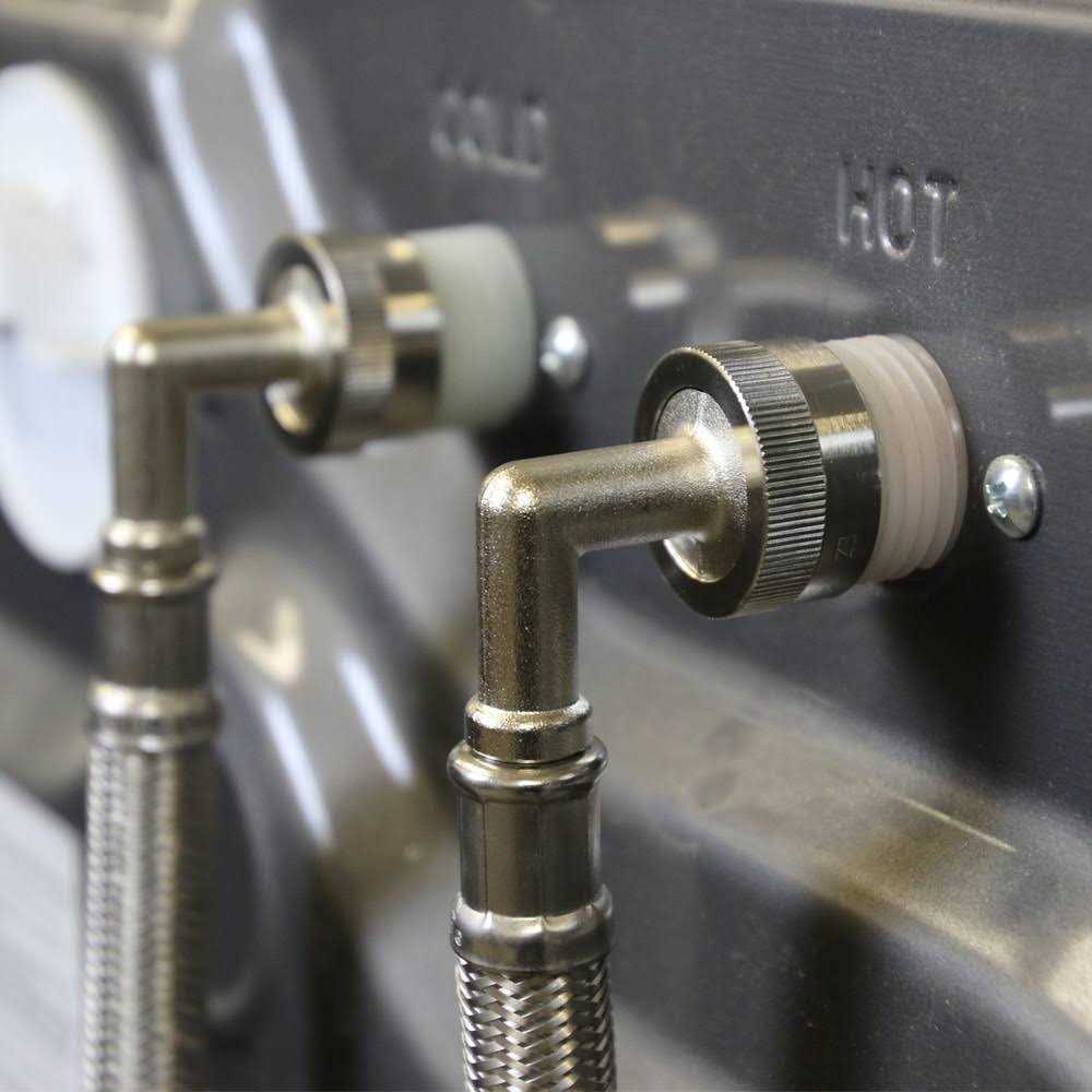 The 4-ft stainless steel washing machine fill hose features a PVC core, multi-filament braided nylon reinforcement, a clear vinyl outer shell, and a grade 304 stainless steel braided exterior that is designed to prevent kinking and crimping. The flexible supply line resists corrosion and is easy to install. EASTMAN certified appliance connectors are premium quality products that provide a reliable installation every time.