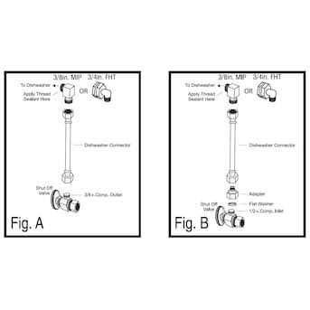 This 8 foot dishwasher installation kit includes the parts needed to plumb in your new dishwasher. The supply line features a non-toxic PVC core and a grade 304 stainless steel braided exterior that is designed to prevent kinking and crimping. The installation kit includes different sized adapters making this item a universal fit for any brand.