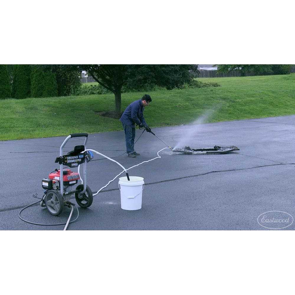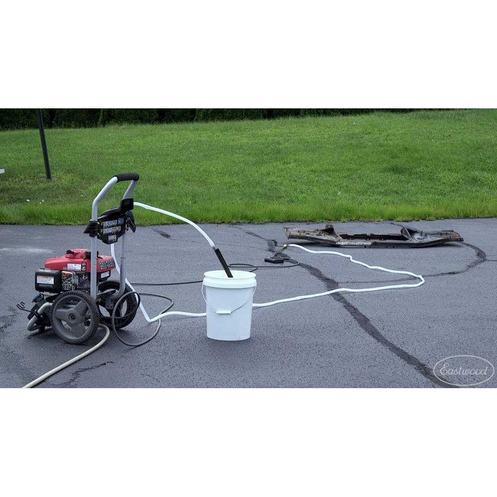 With all the dangerous solvents, strippers and other chemicals available to clean your car’s parts, sometimes all that’s needed is water and some high pressure. The Eastwood Liquid Media Blaster is specifically designed to use high pressure water from a gas-powered pressure washer as a source for powerful dust-free abrasive blasting. With this sturdy attachment, you can tackle tough cleaning jobs without the use of elbow grease. Strip old paint away, clear out rust or clean off grime from metal or concrete easily. You won’t need a compressor, and you won’t have to worry about heat buildup on the surface. Powerful dust-free abrasive blasting. Efficient siphon feed gun. Removes paints, coatings and loose rust. Replaceable wear components. It features an efficient siphon feed gun with replaceable wear components. The Eastwood Liquid Media Blaster provides a dust-free method to strip away old paint and coatings, body fillers, accumulated dirt and loose rust leaving a clean, bare metal surface ready for damage repair or painting. It will also work with media of 30 grit or finer.