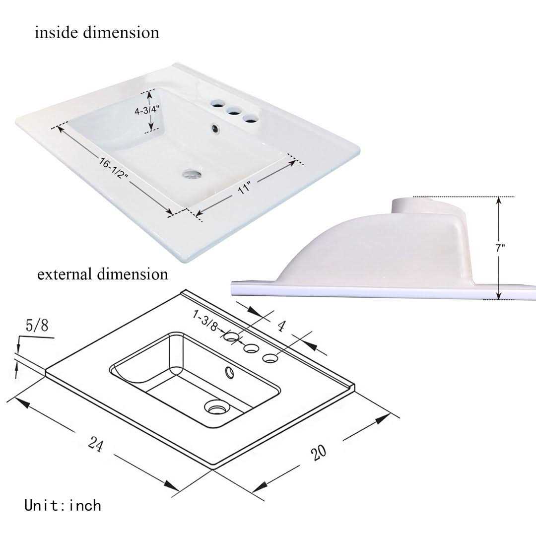 Eclife BT-T01 White Ceramic Rectangular Drop-In Bathroom Sink with Overflow