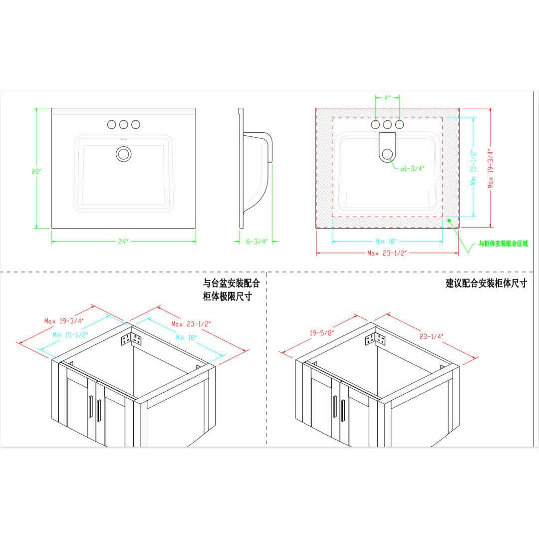 ECLIFE BT-T01 White Ceramic Rectangular Drop-in Bathroom Sink with Overflow