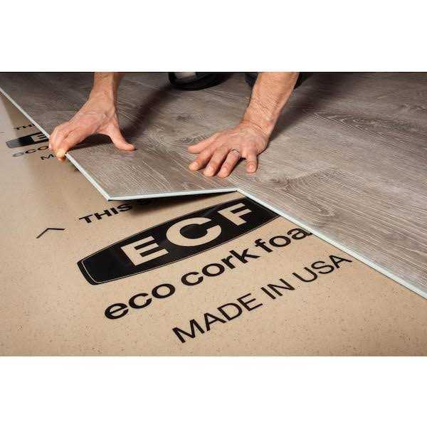 Eco Cork Foam Eco Cork Foam (ECF) is the ultimate sustainable underlayment choice. Engineered using a proprietary blend of polyethylene and granulated cork, nontoxic ECF has certified ultra-low VOC emissions, making it pet- and family-friendly. ECF also features antimicrobial mould, mildew, and fungal protection. It comes ready to cut and install, so with ECF plus your flooring, you have everything you need. Buy the floor. Buy ECF. You’re done. Featuring a built-in 6 mil vapour barrier, ECF is technologically advanced and outperforms the competition in every way, from moisture protection and ease of installation to superior sound absorption. Perfect for use on wood or concrete subfloors and on any level of your home, including basements. When used over a concrete subfloor, ECF eliminates the need for an additional vapour barrier, saving time and money.