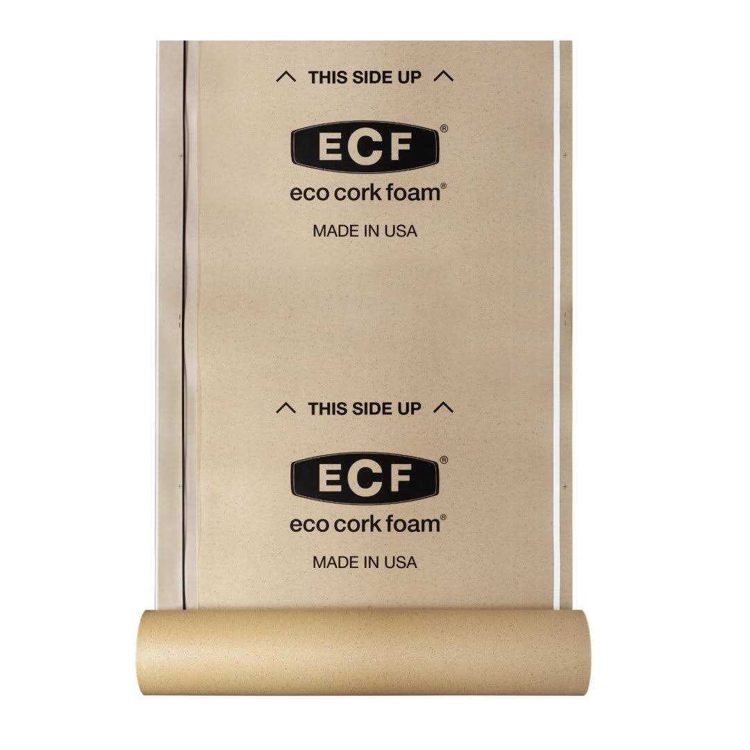 Eco Cork Foam Eco Cork Foam (ECF) is the ultimate sustainable underlayment choice. Engineered using a proprietary blend of polyethylene and granulated cork, nontoxic ECF has certified ultra-low VOC emissions, making it pet- and family-friendly. ECF also features antimicrobial mould, mildew, and fungal protection. It comes ready to cut and install, so with ECF plus your flooring, you have everything you need. Buy the floor. Buy ECF. You’re done. Featuring a built-in 6 mil vapour barrier, ECF is technologically advanced and outperforms the competition in every way, from moisture protection and ease of installation to superior sound absorption. Perfect for use on wood or concrete subfloors and on any level of your home, including basements. When used over a concrete subfloor, ECF eliminates the need for an additional vapour barrier, saving time and money.