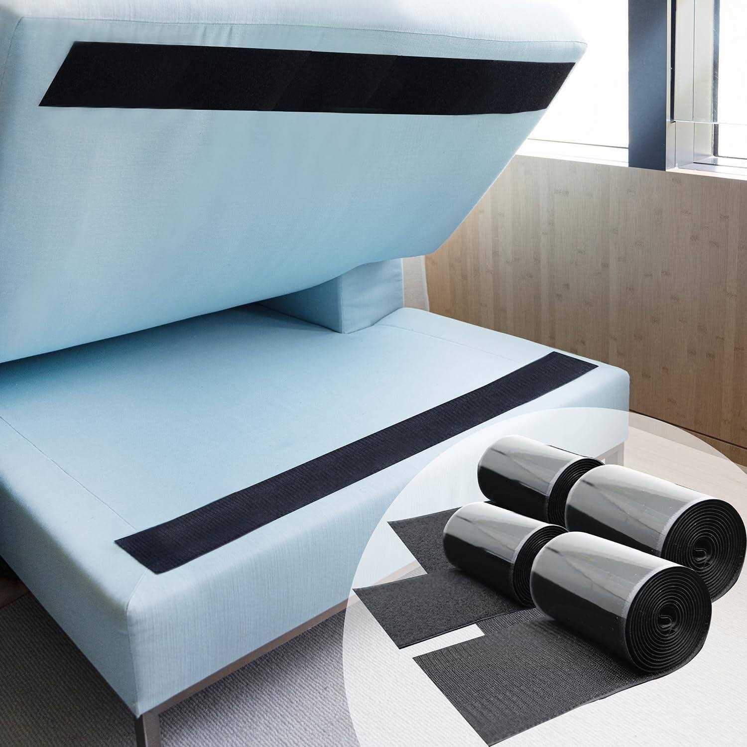 KEEP COUCH CUSHIONS FROM SLIDING- These double sided hook and loop tape roll with adhesive firmly secure your couch cushions and prevent your sofa cushions from slipping. No more frustration dealing with sliding cushions! STRONG ADHESIVE SUPPORT- Heavy duty, great adhesive strength! The self fastening tapes have strong durability and work well for different couch cushion and sofa fabric types, patio and outdoor cushion pad so that it will never slide when you are sitting on it PERFECT FOR INDOOR, OUTDOOR, PATIO USE- Use these large, extra wide 4.4 inches self adhesive strips to prevent your sofa couch cushions, patio cushion, rugs, chair pads, mattress toppers, furniture, carpets, sofa beds and other things from slipping SIMPLE INSTALLATION- ECOHomes anti skid couch cushion grip pad sheets are easy to install. Simply cut the sheet length you need and paste the hook and loop tape on each side and you are done! HEAVY DUTY NON SLIP GRIPPERS- Trim the self stick anti slip gripper tape according to the length you require. You can also use it for various craft, DIY, industrial projects to mount, secure and organize objects around the house! Tired of constantly having your couch cushion, sofa or mattress slipping off? ECOHomes Couch Cushion Grip Tape helps to firmly secure your couch, cushions, mattresses or sofa bed, preventing it from slipping and sliding away.The couch cushion non slip pads work on objects with smooth surfaces. This means besides using them for your cushion, they can be used to prevent your rugs, carpets or mattresses from sliding, or even for DIY craft and other uses around the home. A lifesaver if you constantly find your cushion slipping off and you find readjusting it is an absolute chore! These heavy duty couch cushion grip tapes are also good for both indoor and outdoor uses. You can use them for your patio to keep patio cushions from sliding, or to keep any outdoor couch cushions securely in place. Besides indoor and outdoor uses, they are also great for garage use, for office, schools, crafting and more! FAQHOW DO I INSTALL IT? Simply cut out the length you require for each hook and loop connector tape and paste it firmly on each side of the cushion, then connect both sides of the hook and loop tape together.WILL IT FIT MY CUSHION? It works on a variety of cushions and sofas with smooth and flat surfaces. They are also ideal for fabric and non-fabric bottoms, leather sofas, outdoor patio couches and more.WHAT OTHER USES CAN I USE IT FOR? These hook and loop tape can be used widely around the house, school or office. You can use it for mounting, to prevent your rugs or carpets from moving, home organization, DIY projects, crafting and more! WILL IT FALL OFF EASILY? These heavy duty hook and loop strip tape has strong adhesive support and it is made of premium self fastening material.