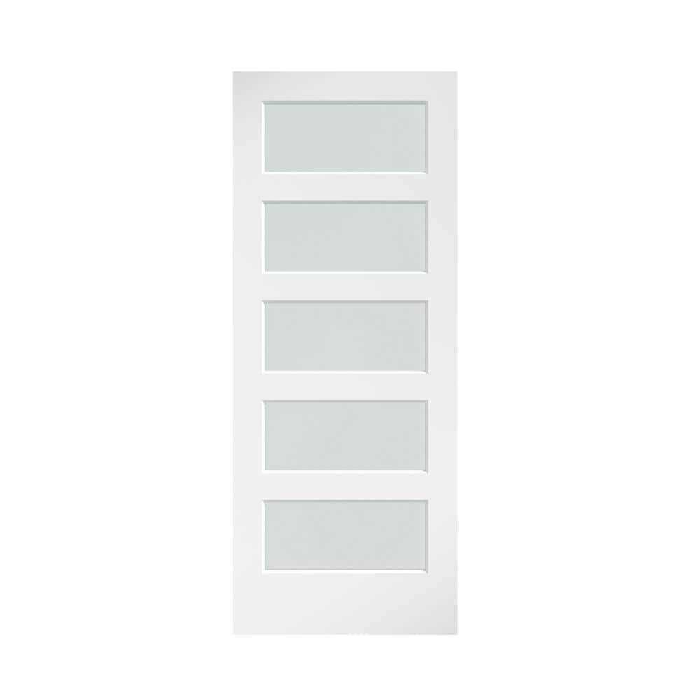 EightDoors 5-Lite Frosted Glass White Prefinished Solid Wood Core Barn Door