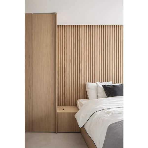 Ejoy 106 in. x 6 in x 0.5 in. Solid Wood Wall 7 Grid Cladding Siding Board in Light Oak Color (Set of 4-Piece)