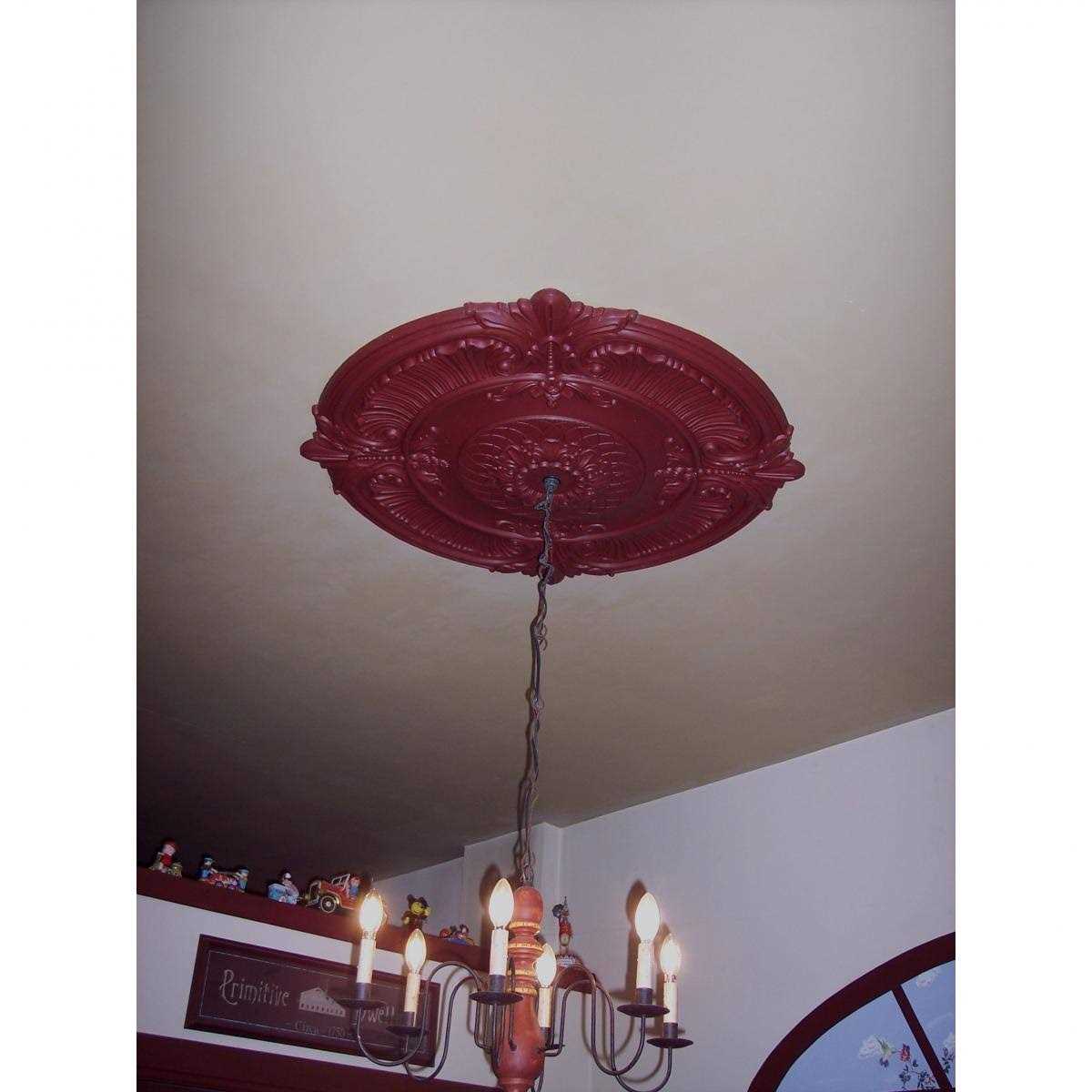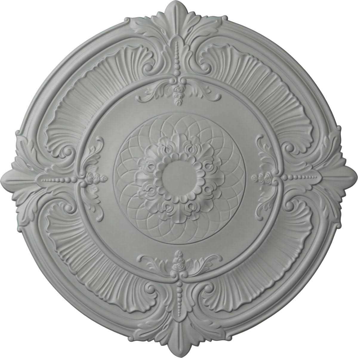 Our ceiling medallion collections are modeled after original historical patterns and designs. Our artisans then hand carve an original piece. Being hand carved each piece is richly detailed with deep relief, sharp lines and a truly unique touch. That master piece is then used to create a mould master. The finished look is a beautifully detailed, light weight, solid construction, focal piece. The resemblance to original plaster medallions is achieved only by using our high density urethane and not vacuum formed, plastic type medallions. Medallions can be cut using standard woodworking tools to add a hole for electrical or a ceiling fan canopy. Medallions are light weight for easy installation. They are fully primed and ready for your paint. Modeled after original historical patterns and designs Solid urethane for maximum durability and detail Lightweight for quick and easy installation Factory primed and ready for paint or faux finish Can be cut, drilled, glued or screwed Can be used on the interior or exterior 39 1/2 in.