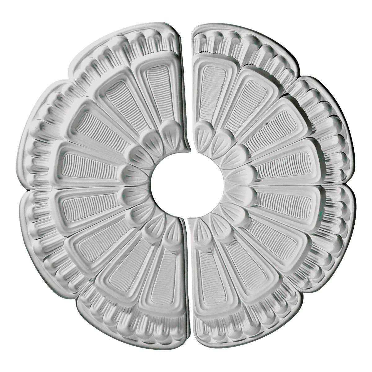 Ceiling Medallion by Ekena Millwork from the Flower collection Our ceiling medallion collections are modeled after original historical patterns and designs. Our artisans then hand carve an original piece. Being hand-carved, each piece is richly detailed with deep relief, sharp lines, and a truly unique touch. That master piece is then used to create a mould master. The finished look is a beautifully detailed, light weight, solid construction, focal piece. The resemblance to original plaster medallions is achieved only by using our high density urethane and not vacuum formed, “plastic“ type medallions. All of our medallions come fully primed, ready for your paint and can be cut using standard woodworking tools to add a hole for electrical or ceiling fan canopy.