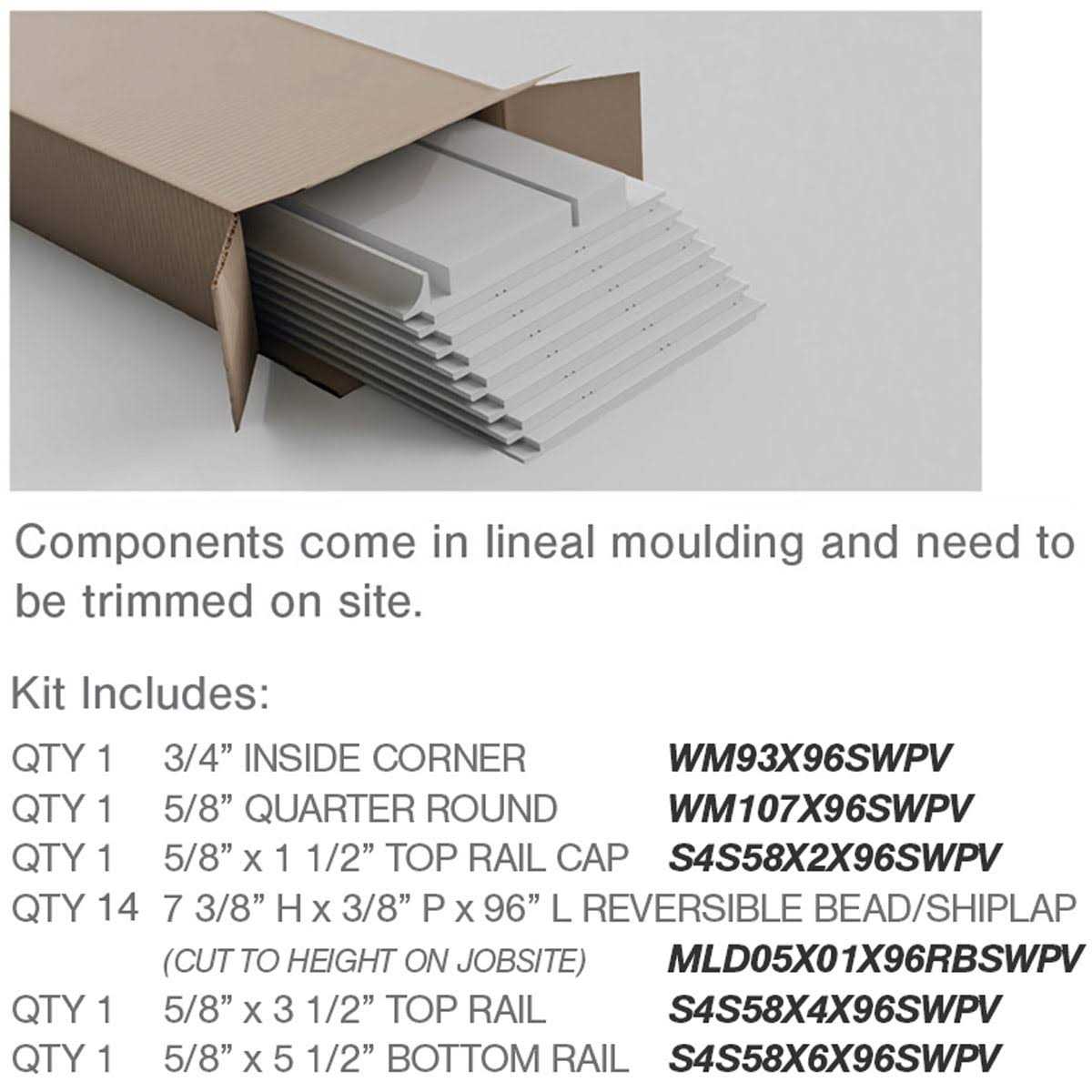 104″ Height Deluxe Shiplap with A Nickel Gap 8′ Length PVC Wainscoting Kit, (FOR Heights Up to 105-5/8″)