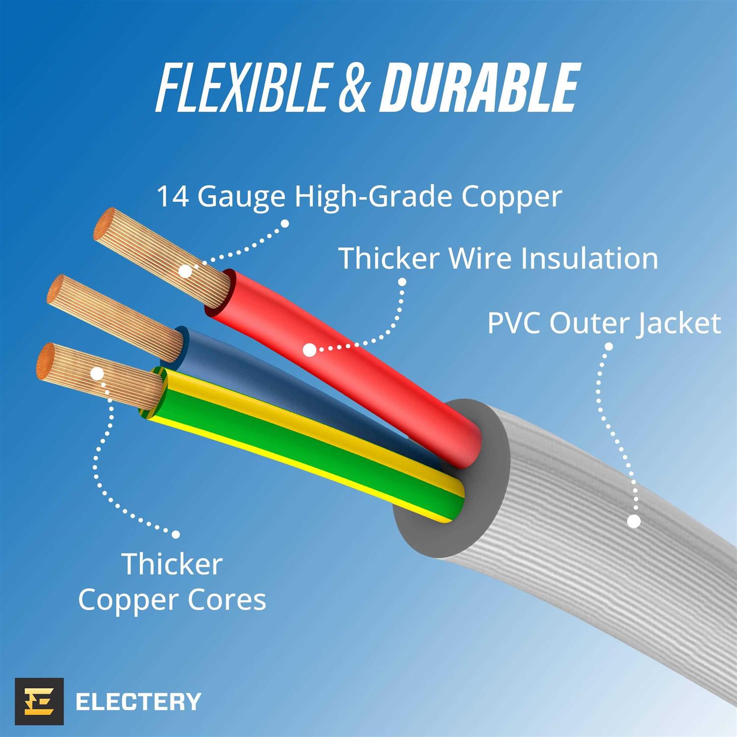 ELECTERY Heavy Duty Appliance Extension Cord, 14 AWG – 3 Prong Grounded Flat Plug, Gray Power Wire for Indoor Air Conditioner and All Major