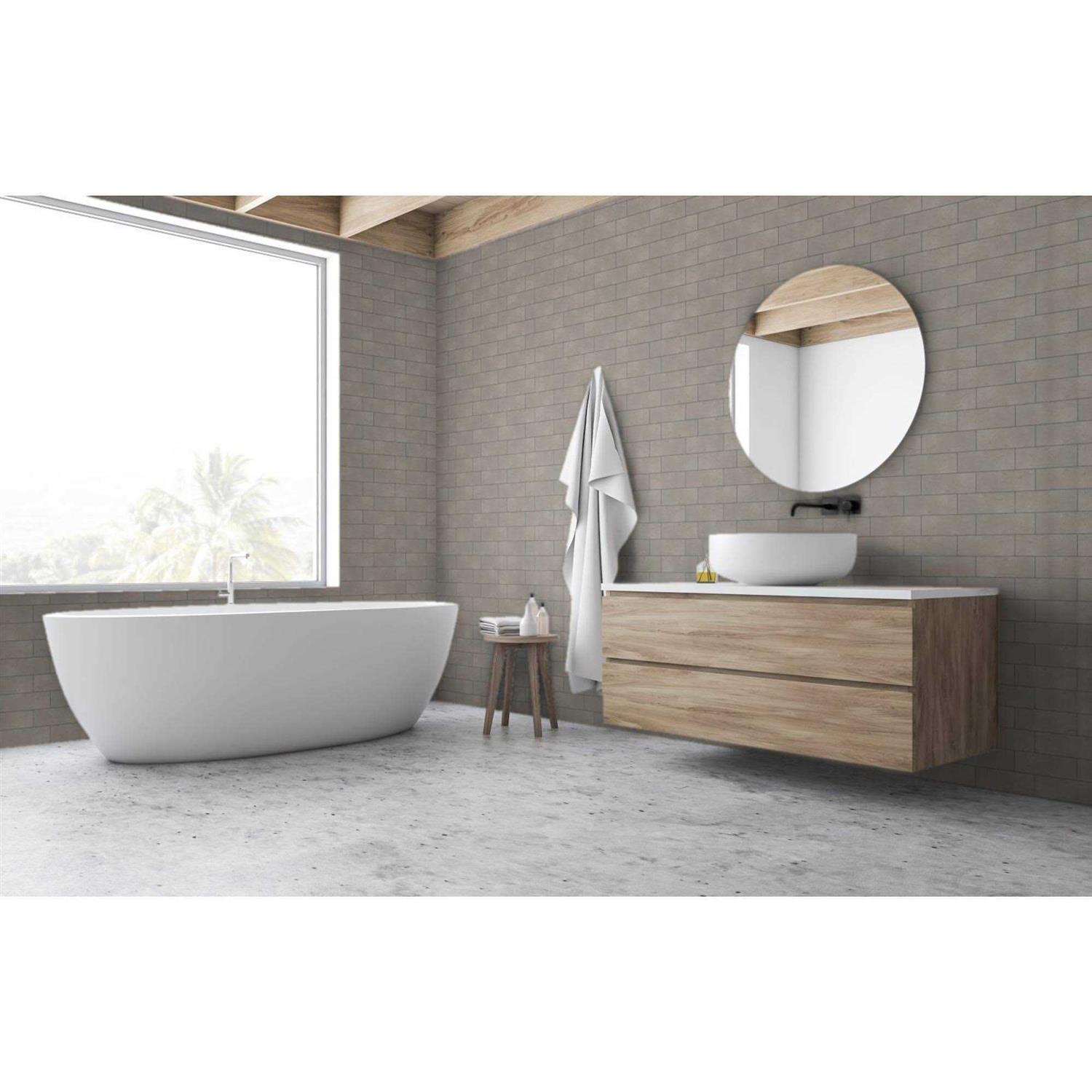 - Porcelain tile with a glossy sheen finish.