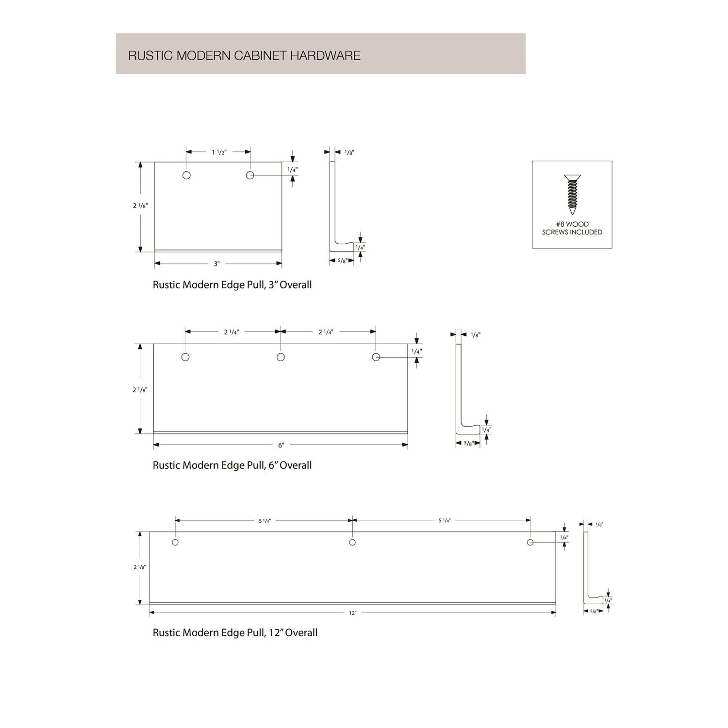 - Rustic Modern Edge Pull, 4 1/2″ Center to CenterFeatures.