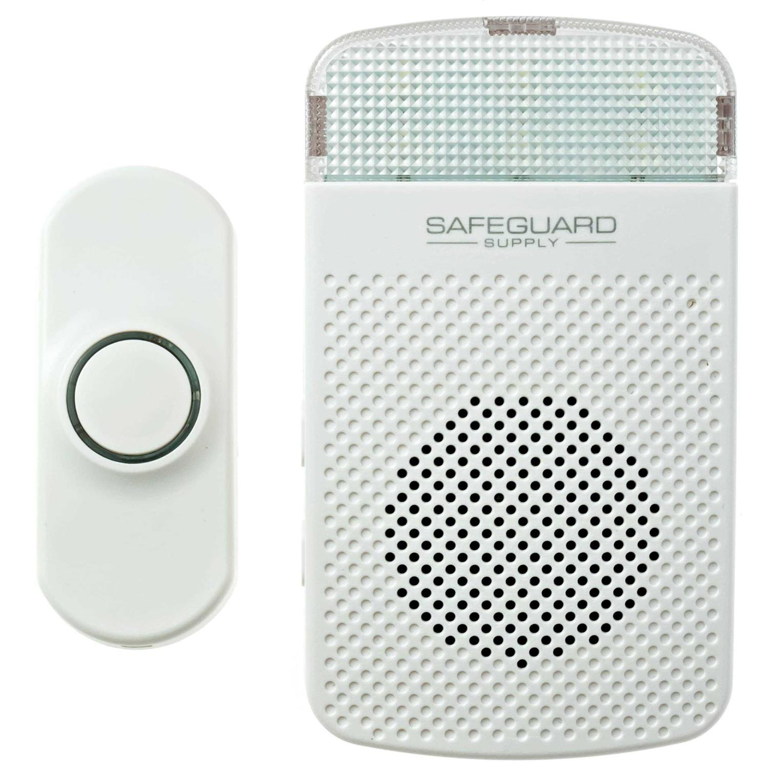 Wireless Doorbell Kit With Cutting Edge Technology: Unique 433MHz wireless door bell signal penetrates multiple floors & walls even thick reinforced concrete, brick & stone. Not prone to interference USA Engineered Wireless Door Chime With Commercial Doorbell Features: Durable, ABS IP65 waterproof door bell button with green LED. FCC & UL Listed 90dB chime- 4 level mutable volume & on/off strobe No Limit On How Many Doorbell Chime Wireless Receivers You Can Add: Unlike other doorbell chimes, you can add as many receivers as necessary to provide the coverage you need as far as 4000′ away Expand By Adding Select Safeguard Supply ERA Products: outdoor motion sensor (ERA-DSTX), indoor motion sensor (ERA-PIR), door contact (ERA-UTX), portable receiver (ERA-VPRX), power receiver (ERA-DCRX) Safeguard Supply Innovation: Door bells & chimes wireless kits USA engineered as industrial grade for durability & reliability but packed full features geared towards doorbells for home & business use Safeguard Supply ERA-Doorbell-Plug In – Innovative doorbell chime That Goes The Distance Yes it has a 3/4 mile range (4000′) but it’s not only about the range, it is more about the duty cycle signal technology. Lower price means lower quality and those run of the mill elementary door bell chime products dressed up in the snazzy flimsy plastic skins are designed to be cheap. Those wireless door bell chime units are not effective enough to pass through visible objects (reinforced concrete, brick, stone, low-e window film, multiple floors & walls, etc). IF the signal passes through those visible structures, it loses signal strength to they point they can’t they travel very far AND pass through invisible objects (RF, Wifi, Bluetooth & smart devices & other frequencies). All Safegaurd Supply wireless doorbell chime products are USA engineered to perform in the most demanding industrial conditions so they can meet the demands of wireless doorbells for home applications. The ERA-Doorbell-Plug In Kit Includes: 1) ERA-PBTX Doorbell Button (1)ERA-RXPG Doorbell Wireless Receiver The easy to mount 2.75″H1.25″W0.74″D weatherproof, white push button has a dimly lit green LED that illuminates at night. The green LED also flashes to confirm signal transmission. You can pair 12 push buttons to one receiver. Hi Power CR2450 battery lasts 2-4 years. The 90dB, 4 volume level, 12 melody, FCC & UL listed, 4.74″H2.75″WX1.5″D extra loud doorbell receiver plugs into a standard wall outlet. It has 3 operation modes – strobe + sound, sound only & strobe light only making it an ideal doorbell for deaf people and doorbell for the hearing impaired. You can use an unlimited number of receivers. Configurable & Expandable Like No Other Doorbell Chime Kit All Safeguard Supply ERA series products operate on the same powerful duty cycle frequency so you can add & interchange products from driveway alarms to portable handheld visual & vibrating receivers.