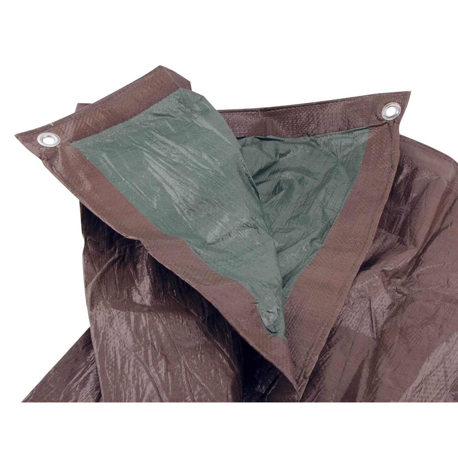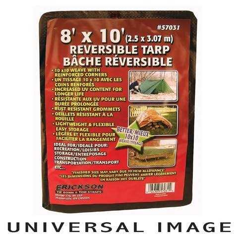 Durable weather-resistant and UV Protected Tarp’s 5.5mm thickness is constructed of strong 10×10 woven nylon strands that are coated and bonded on both sides with Polyethylene film. Reinforced edging with strong poly rope inside the hem on four sides increases strength. Tarp corners are reinforced for durability and feature rust-resistant aluminum grommets that continue every 3 feet along each edge. The brown and green reversible tarp is less visible and blends in with the spring and fall colors. Across the country, some cities have by-laws which do not allow blue tarps within city limits. Available in several sizes. As a leader of Tie-Down and Towing Products in North America, Erickson strives to provide the safest products available with the consumer in mind. Tie it. Tow it. Load it. Count on Erickson.