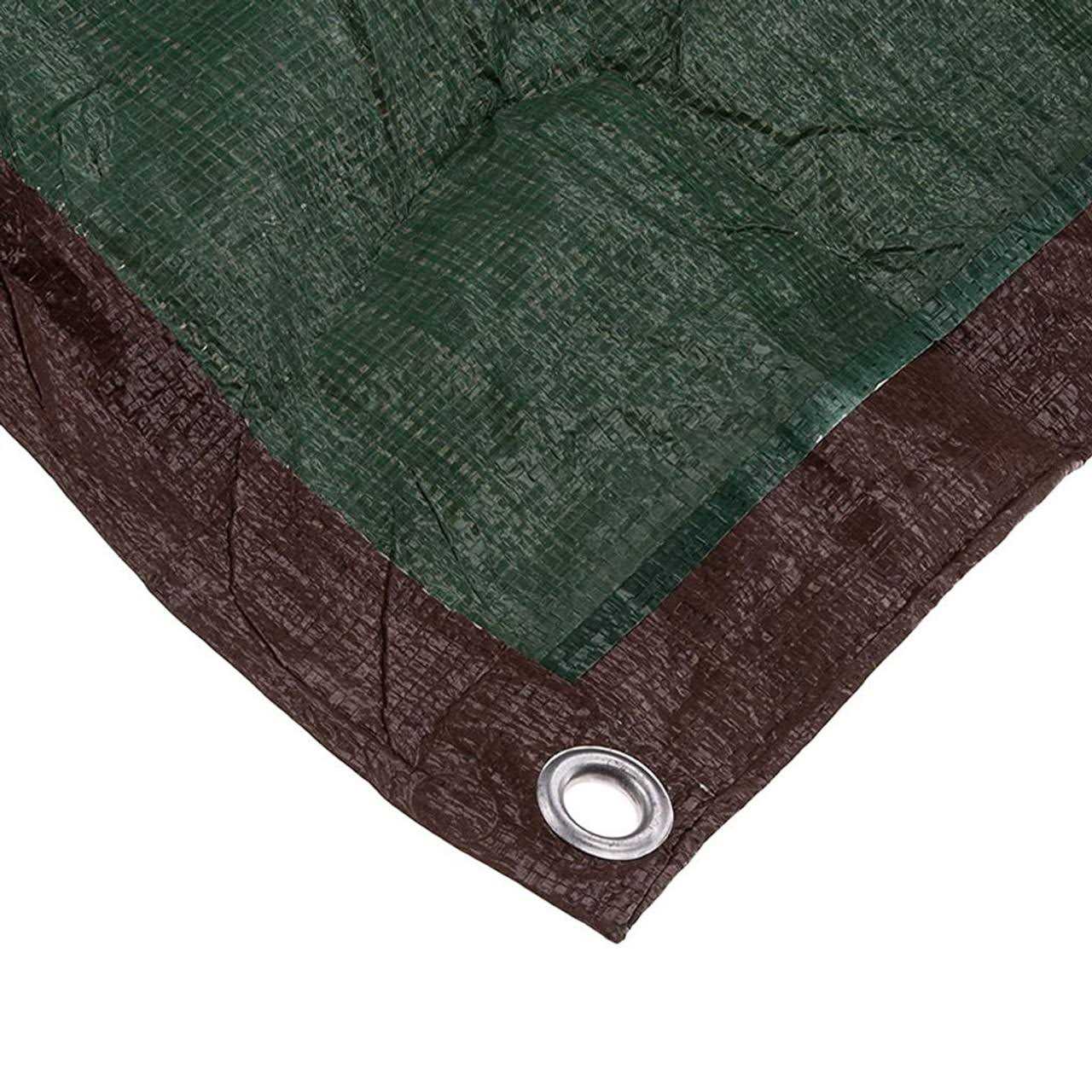 Mid Grade Reversible Poly Tarps Brown/Green 12’x16’These Mid-Grade poly tarps are designed to be a step up from the economy line tarps with increased durability. This makes these tarps ideal for a variety of uses, from construction to gardening, this tarp can cover it all. The brown/green color is made specifically for the regulations of some cities as some areas do not allow blue tarps. This brown/green tarp blends in with wildlife better, and is better suited to its surroundings. It blends in so well you can even use it for hunting.You can look forward to using this tarp in the mud and rain with no issues since it is waterproof. Cover the new beauty in your driveway, or protect a faltering RV from the elements.Do it all, with this reversable polyethylene tarp.