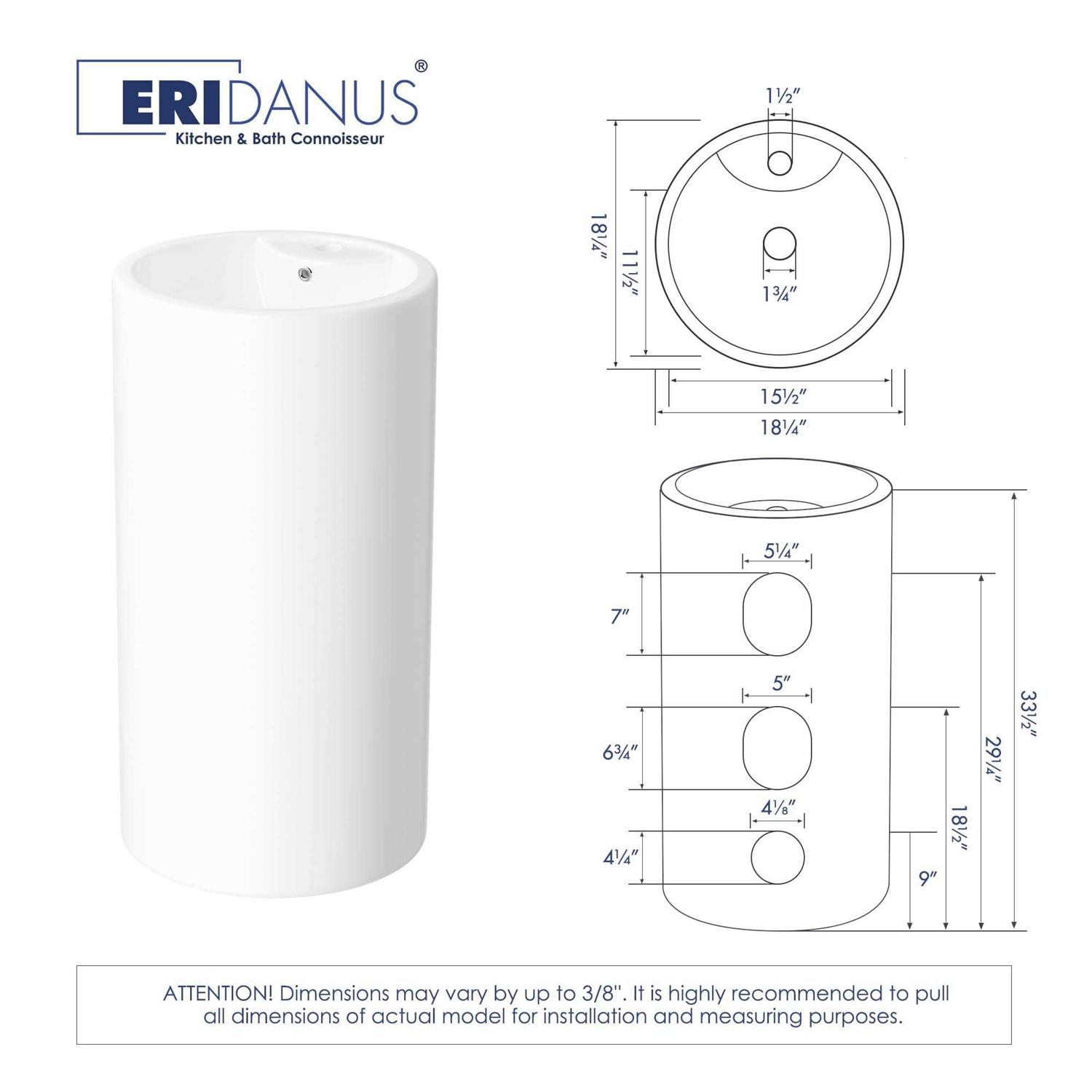 Eridanus Denbigh Vitreous China 33 in. Round Free Standing Pedestal Sink with Faucet Hole and Overflow ERI-PB-401