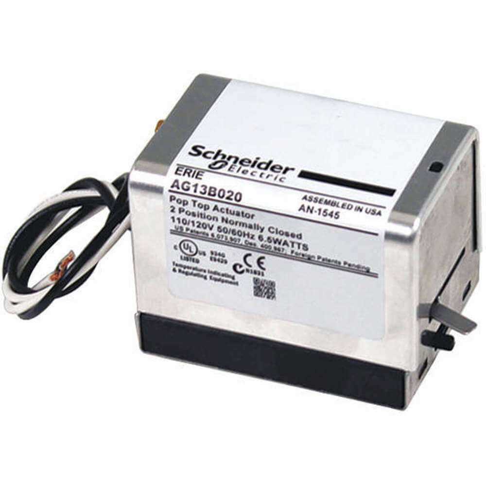The Erie PopTop Actuator 120V is specially designed for heating and cooling applications. It includes color-coded wires for quick and easy installation. The Erie actuator can be installed after the valve body onto a fan coil baseboard or air handler. It’s easy to replace without tools or removal of the valve from the system.