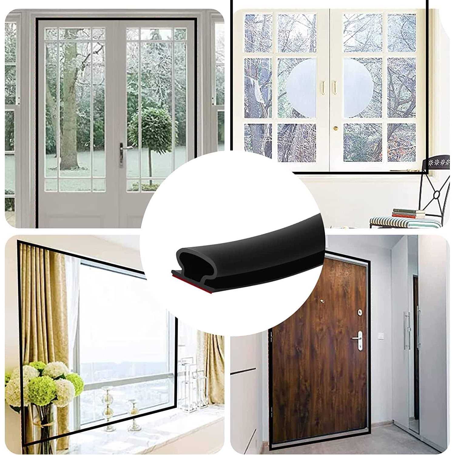 ESUFEIR Door Weather Stripping Door Seal Strip,Self-Adhesive Rubber Door Insulation Weather Strip for Window and Door Soundproofing D Shape